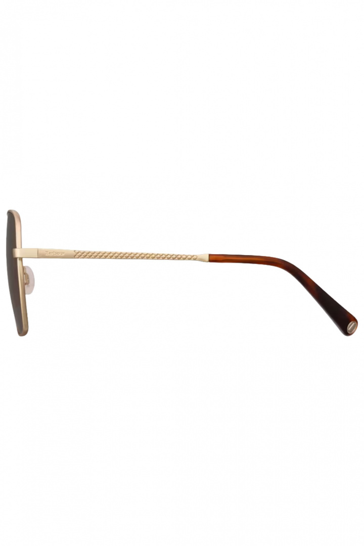 Barbour Bas-3100 BAS-3100 er en damemodel, der forener klassisk britisk stil med Barbours kendte kvalitet. Denne solbrillekombination kommer i farven 001 Guld / Skildpaddefarvet og giver et varmt, sofistikeret look, der passer til både hverdag og fest. Den overdimensionerede, firkantede metalramme giver et tydeligt og moderne udtryk, samtidig med at den solide konstruktion tåler daglig brug. Den gyldne metal harmonerer med skildpaddefarvet mønster, hvilket giver en elegant kontrast og dybde i udseendet.