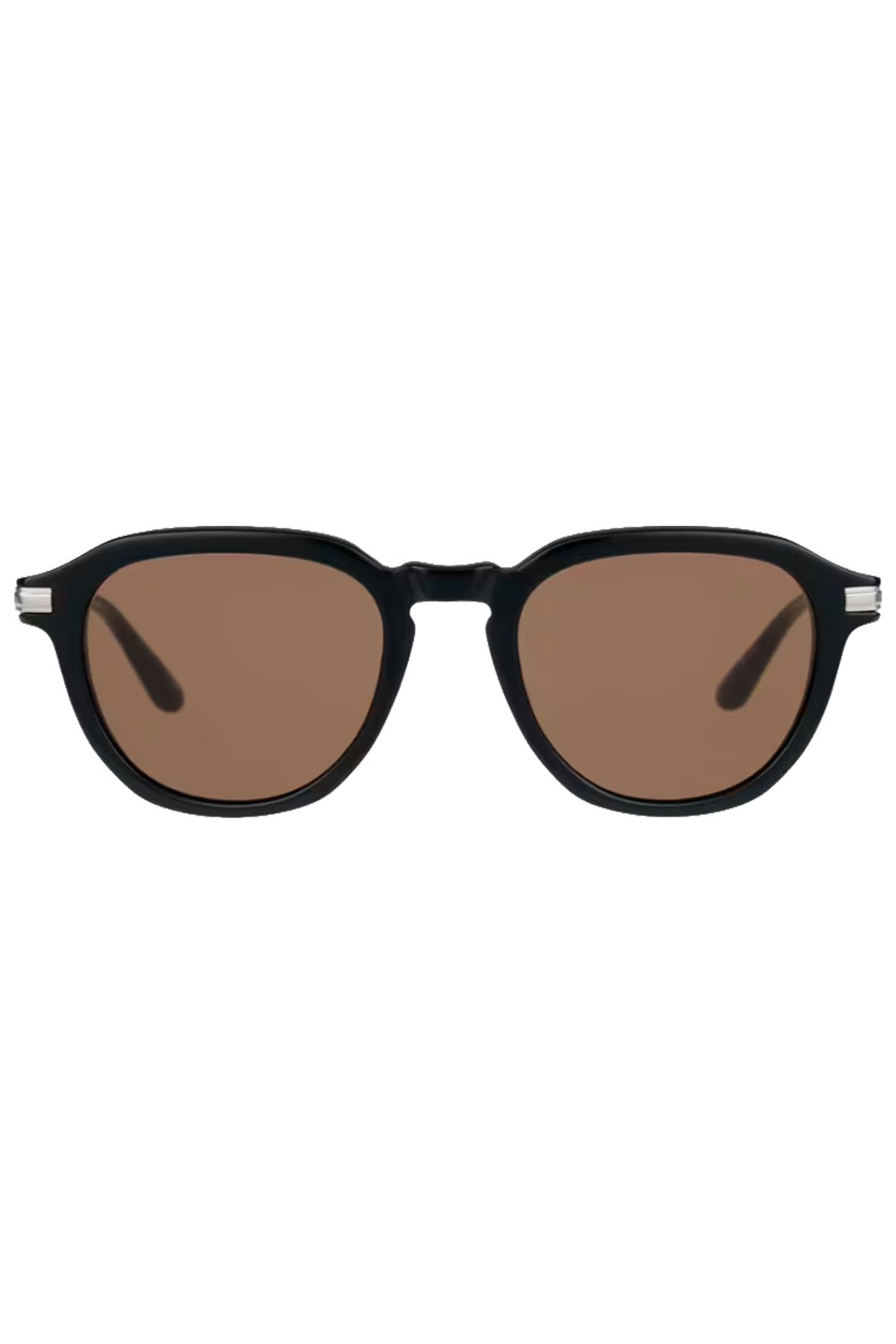 - Kombination af runde glaslinser med kantet detalje og nøglehulsbro