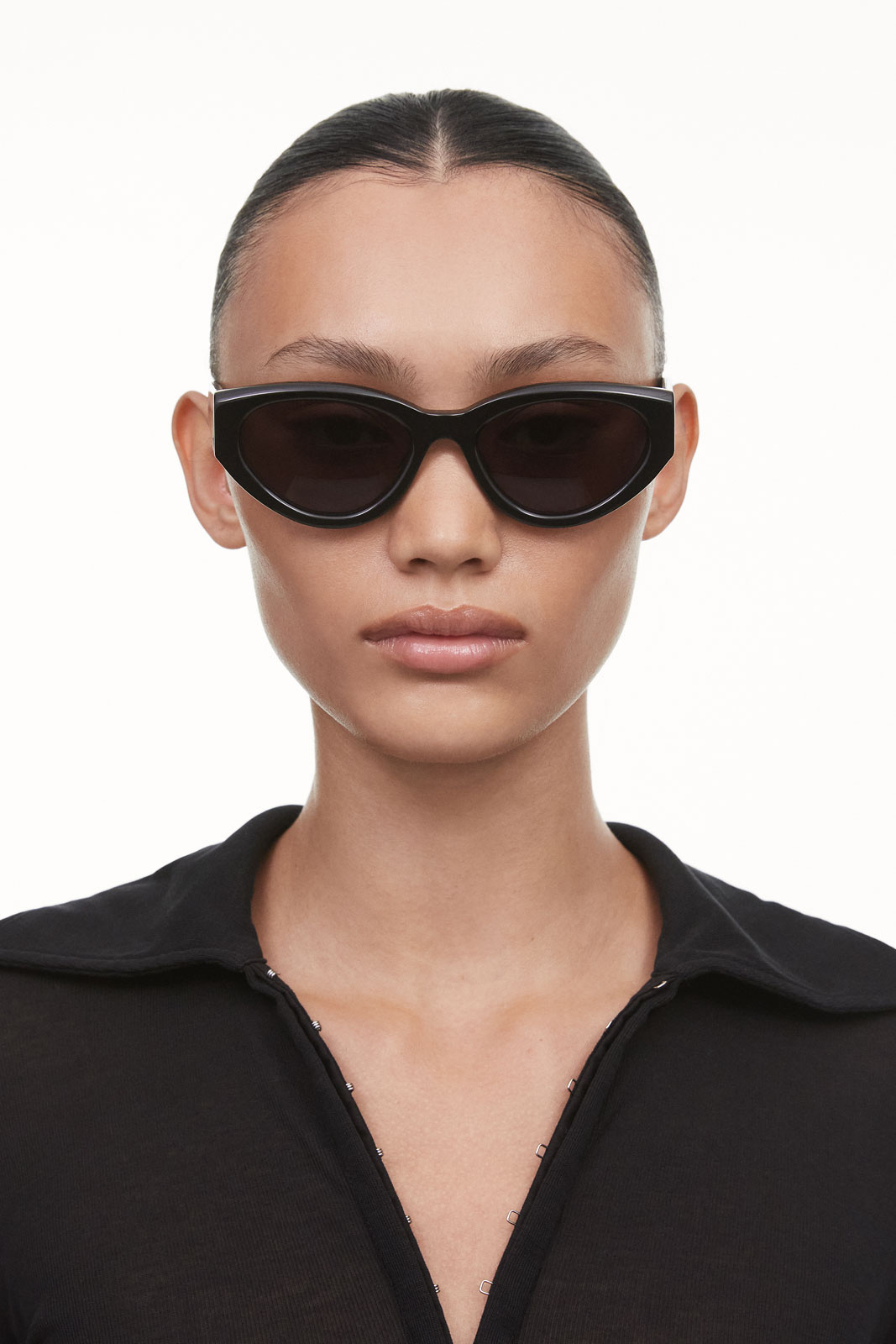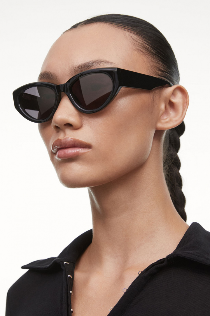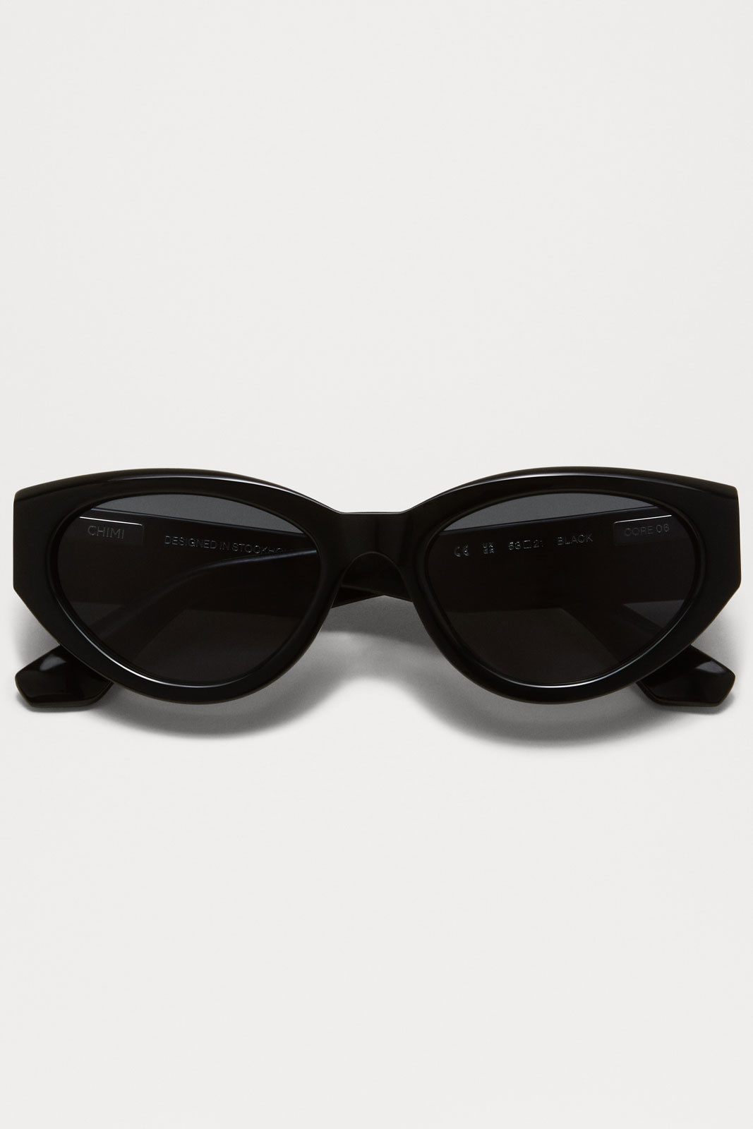 - 06 er en moderne cat-eye-model med firkantede vinger. Facetterede snit giver dybde til den buede silhuet, mens lineære arme og vinklede stel giver et spændende touch. De er udstyret med bløde afrundede UV-beskyttende CR39-linser