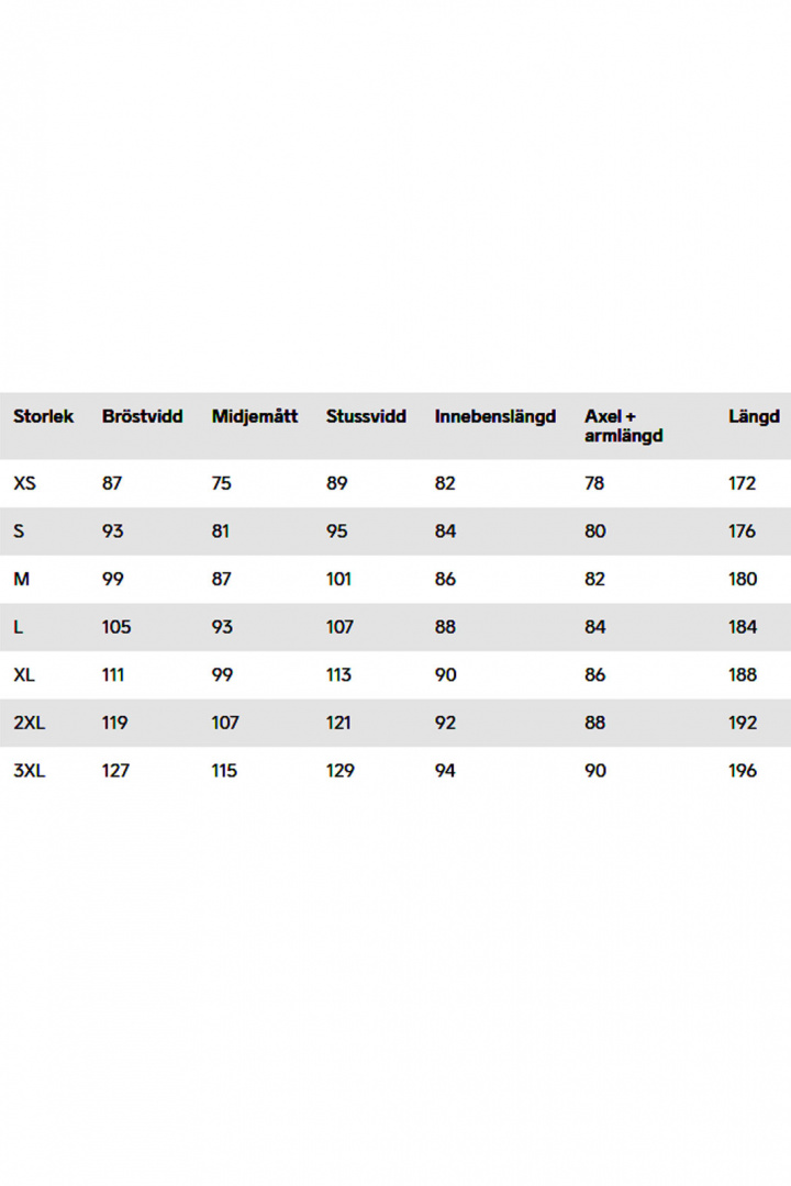 - Vind- og vandtæt 3-lags materiale i ærmerne og nederste del af forsiden