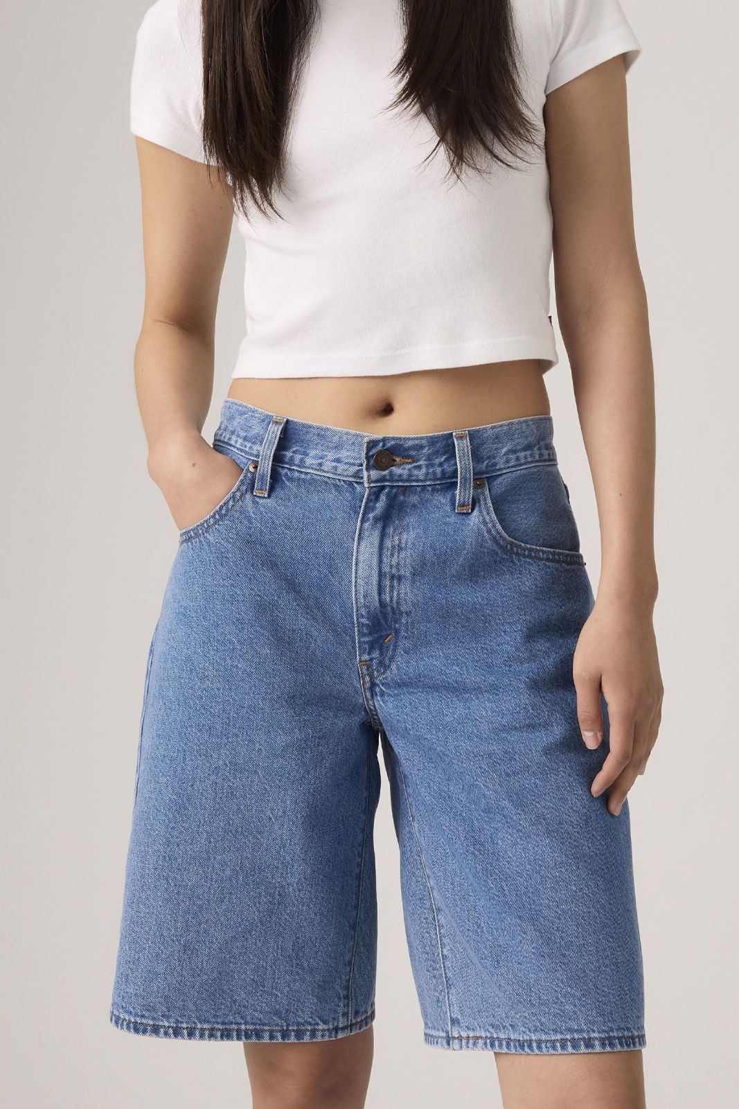 Opdag Levi's Baggy Dad Jort Shorts til damer - en moderne fortolkning af den ikoniske denimstil, der kombinerer komfort med stil. Shortsene har normal talje, lige ben og en loose fit, der skaber en afslappet silhuet uden at gå på kompromis med pasformen omkring hofterne. Den klassiske femfagsmodel sammen med knap med lynlås giver et funktionelt og tidløst design, der passer til både hverdag og afslappede weekender. Fremstillet i 100% bomuld får du en blød, åndbar fornemmelse og en holdbarhed, der kan modstå daglig brug. Disse jeansshorts er lette at matche med alt fra t-shirt og sneakers til sommerlige overdele, hvilket gør dem til et prisvenligt og pålideligt valg i sommergarderoben. Vælg Levi's Baggy Dad Jort Shorts for en stil, der føles afslappet men stadig gennemtænkt.