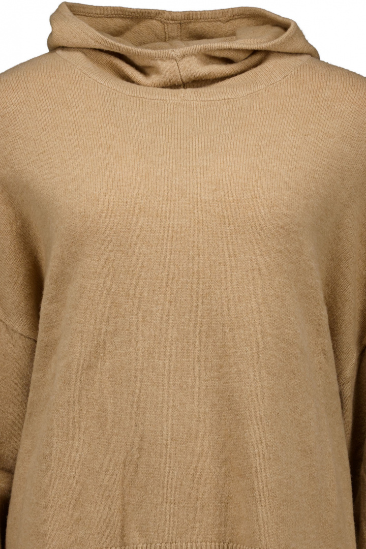 Designet fokuserer på funktion og enkelhed. Den fint strikkede overflade, den praktiske hætte og ribkanterne ved ærmeslut og i bunden giver en afslappet men velreguleret silhuet. Hætten beskytter mod vind og gør beklædningen alsidig til uforudsigelige vejrfænomener, mens det rene, tidløse udseende gør Evette hoodie nem at matche med både jeans og nederdel, jakker og ydertøj.