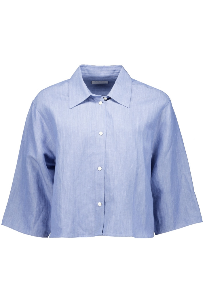 Corins S71565 skjorte til damer fra Tiger Dam er en moderne fortolkning af en klassisk skjorte med afslappet pasform og cropped længde. Den klassiske krave sammen med knaplukningen foran skaber en tidløs silhuet, der nemt kan dresses op eller ned. Den korte længde gør den nem at style med højtaljede jeans, en nederdel eller bukser til et chic hverdagslook, uden at gå på kompromis med komforten.