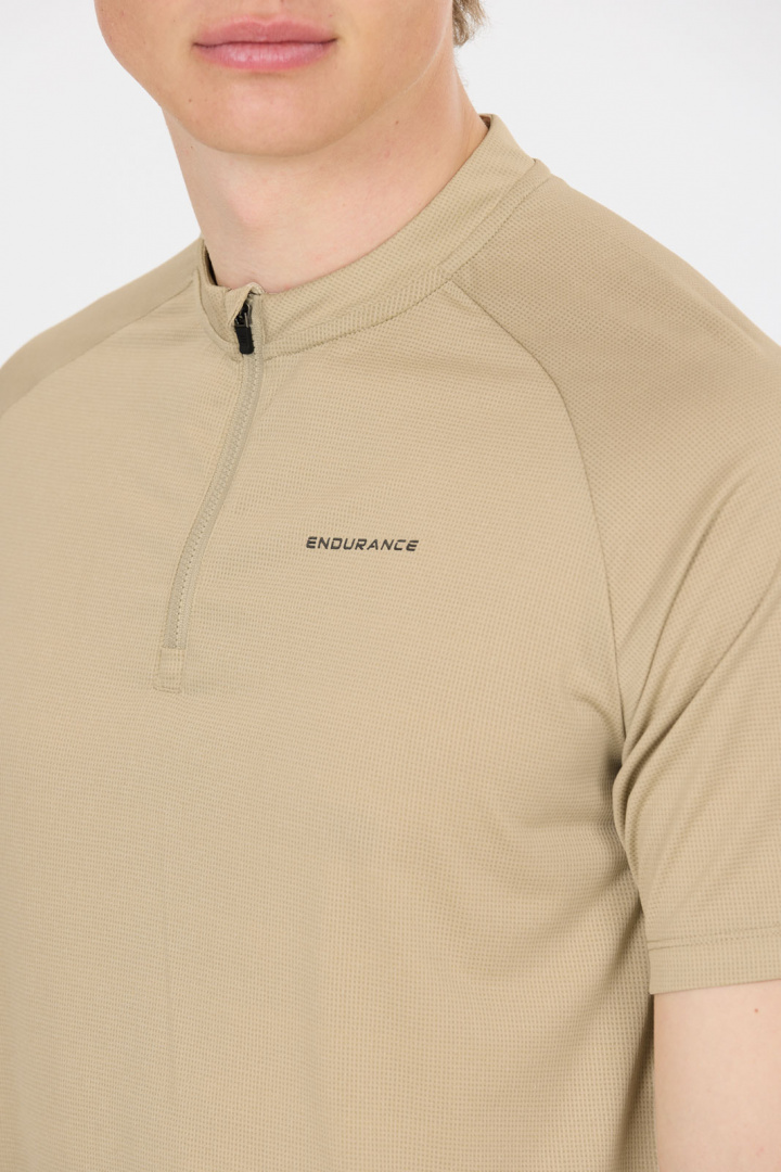 Opdag Crow M Melange Cycling/MTB SS Shirt fra Endurance - en herre cykel-T-shirt med korte ærmer, der er designet til både cykling og MTB. Med en normal pasform får du fri bevægelse og komfort, når du træder op ad bakker eller susser ned ad tekniske stier. Den stående krave sammen med den praktiske lynlås foran, som kan justeres, giver dig nem ventilation og beskyttelse afhængigt af vejr og høj intensitet. Det diskrete tryk af Endurance-logoet giver et sporty, stilrent look, der passer lige godt til træning som til hverdag.