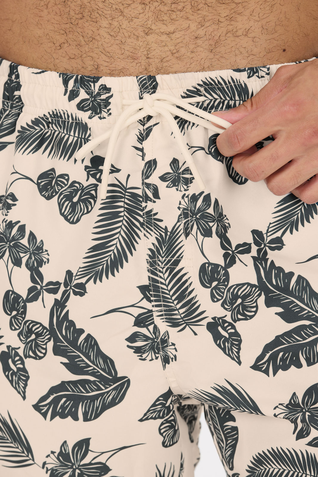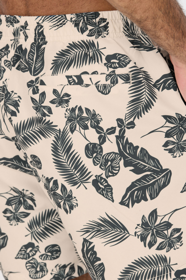 Fileyer M Swim Shorts fra Nou er herrebadshorts, der kombinerer stil, funktion og komfort i ét og samme plagg. Med normal talje og en elastik i taljen med snøring får du en sikker og behagelig pasform, der sidder godt uanset aktivitet. Den lige benlyn er giver en tidløs, afslappet silhuet, der passer til de fleste kropstyper og gør shortsen nemme at kombinere med forskellige overdele. De åbne sidelommer tilbyder praktisk opbevaring, mens den åbne baglomme med velcro sikrer nøgler eller små genstande uden risiko for, at de falder ud. Indvendigt mesh-fôr i indershortsene giver ekstra komfort og ventilation, når du er i vandet eller hviler ved kanten. Den mønstrede design giver et sporty og moderne udtryk, der passer både til poolen og stranden. Fremstillet af 95% polyester og 5% elastan er