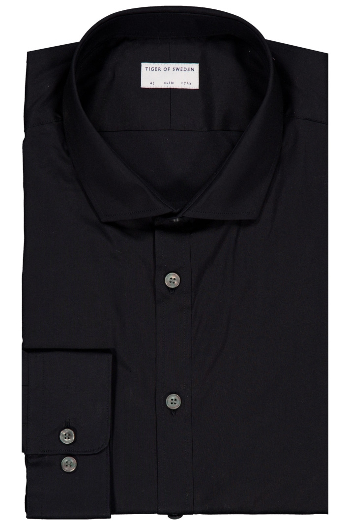 Filliam Skjorte fra Tiger of Sweden er en herreskjorte i slim fit, der kombinerer en moderne, flatterende silhuet med klassiske detaljer. Den gennemførte cut-away-krave giver en nutidig, sofistikeret finish, der passer lige godt under en blazer som til et rent hverdagslook. Den rundede manchet bidrager til en ren og prisvenlig stil, mens den tydelige knappåbning foran fuldender den elegante, næsten skotske følelse af skjorten.