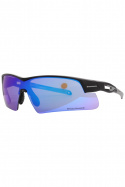- Sportbrillerne Jacque har et let halvramsdesign med spejlet polykarbonatglas og en bøjle af termoplastisk gummi og metal