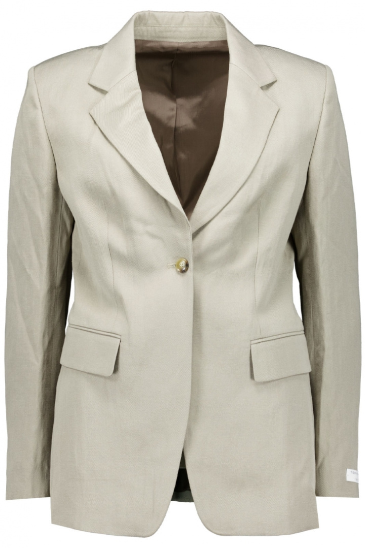 Indvendigt finder du praktiske og stilrene detaljer: en enkel knaplukning foran for en ren kontur, samt to lommer med klap, der tilbyder opbevaring uden at bryde designet. Enkeltspændt giver ekstra bevægelsesfrihed og komfort, hvilket gør kavajen let at kombinere med både nederdel, bukser og forskellige bluser. Denne kavaj er et godt valg for dig, som ønsker en figursyet, alsidig blazer, der fungerer lige godt til arbejde som ved lejligheder, hvor du ønsker at gøre et struktureret første indtryk.