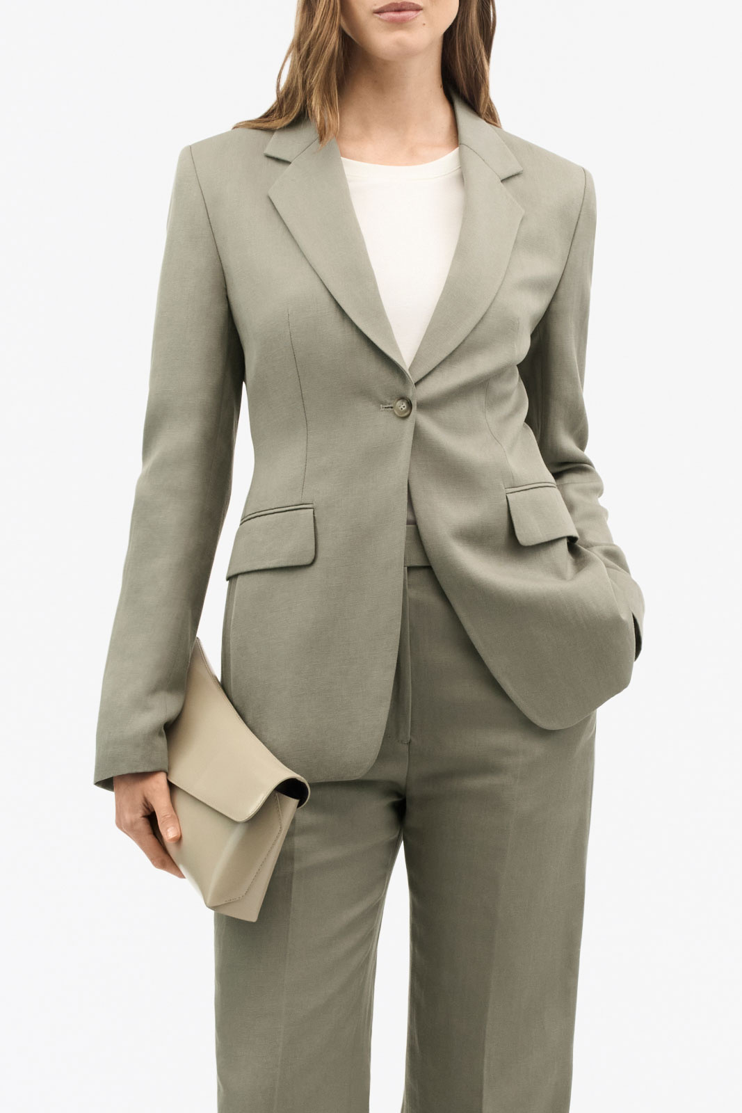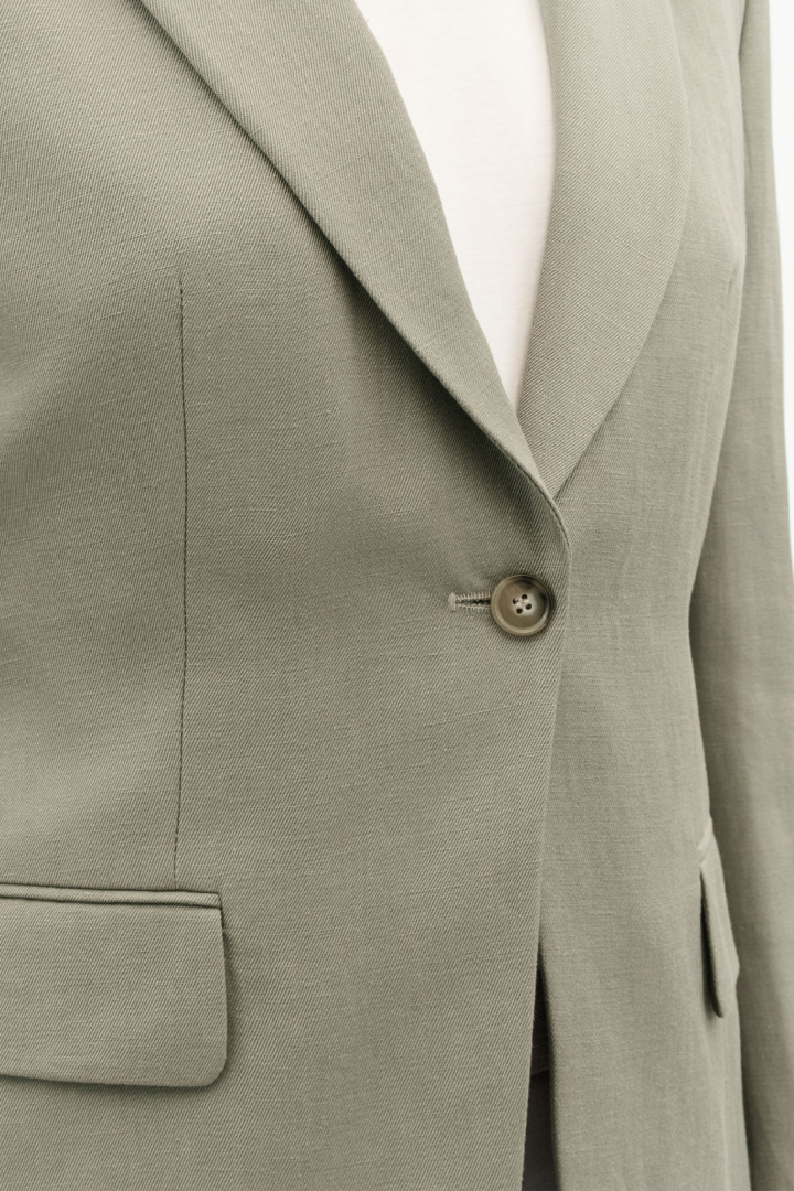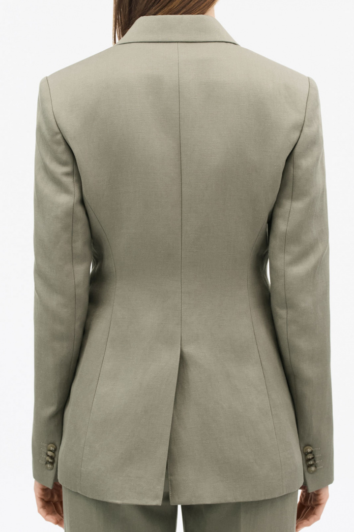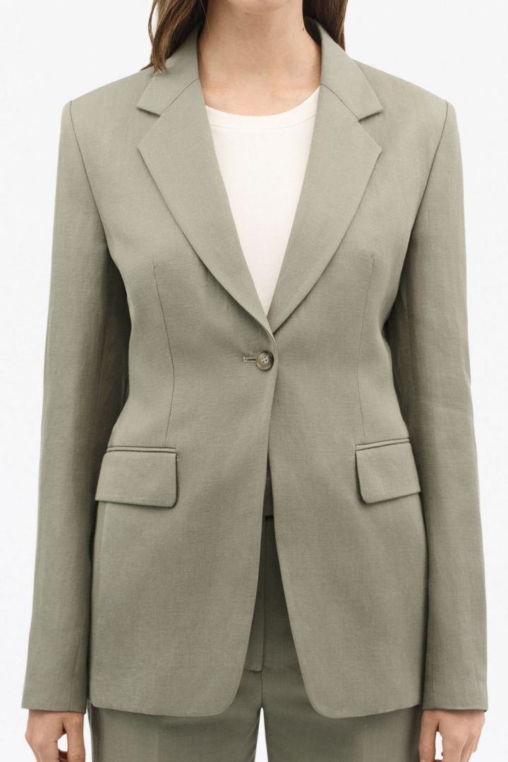 Fremstillingsdetaljerne taler deres tydelige sprog: yderstoffet består af en behagelig blanding af hør og lyocell, hvor hør udgør 34% og lyocell 66%, hvilket giver naturlig luftcirkulation, fin drapering og komfort over dagen. Fodret består af 100% viskose, hvilket bidrager til en glat følelse og lang holdbarhed. Denne kavaj har polstrede skuldre, der giver en defineret skulderparti og en elegant struktur, perfekt til et professionelt look, som stadig føles blødt og behageligt.