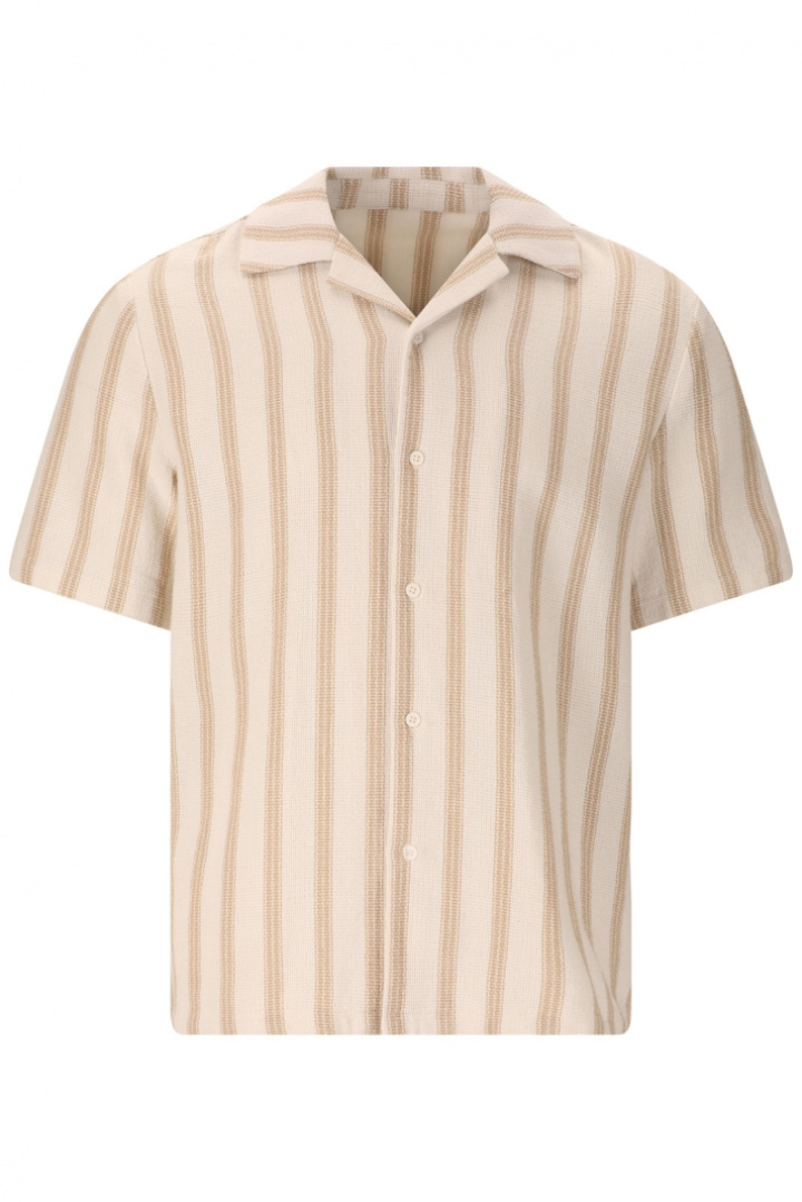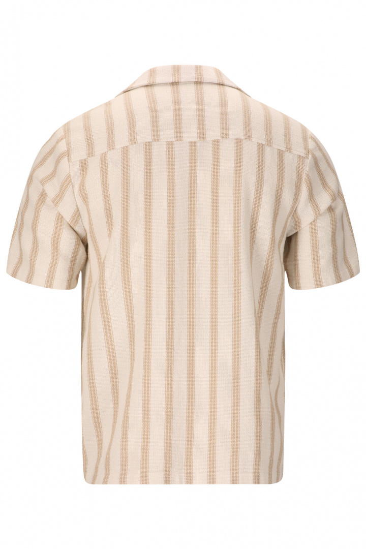 Opdag Puth M S/S Shirt Skjorte fra Nou - en herreskjorte i afslappet pasform, der passer til både hverdag og fridage. Den stribede design i en finfisket struktur giver en subtil tekstur, der løfter dit look uden at overdrive. Bowlingkraven giver et moderne twist, mens den klassiske knaplukning foran holder outfiten pænt og let at matche. Den afslappede pasform giver fri bevægelighed uden at gå på kompromis med stilen, hvilket gør skjorten perfekt til lag-på-lag under koldere dage eller til en afslappet sommerstil.