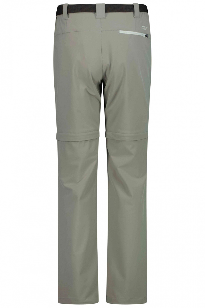 CMP Woman Zip Off Pant er en alsidig damebuks med normal talje, som passer både til udendørs aktiviteter og hverdagsbrug. Den er udstyret med bælte i taljen, trykknap og lynlåsgylf, lige ben og praktiske lommer: sidelommer med lynlås samt baglomme med lynlås. En diskret printet logo giver et stilrent udseende. Den store fordel er zip-off-funktionen, som gør det nemt at omdanne buksen til shorts på få sekunder - perfekt når vejret skifter, eller når du ønsker ekstra bevægelsesfrihed.