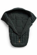 - Det ydre materiale er designet til effektivt at modstå vind og vand. Barnevognsposen er designet med en beskyttende membran til at holde dit barn varmt og tørt. Den opnår dette uden brug af kemiske behandlinger