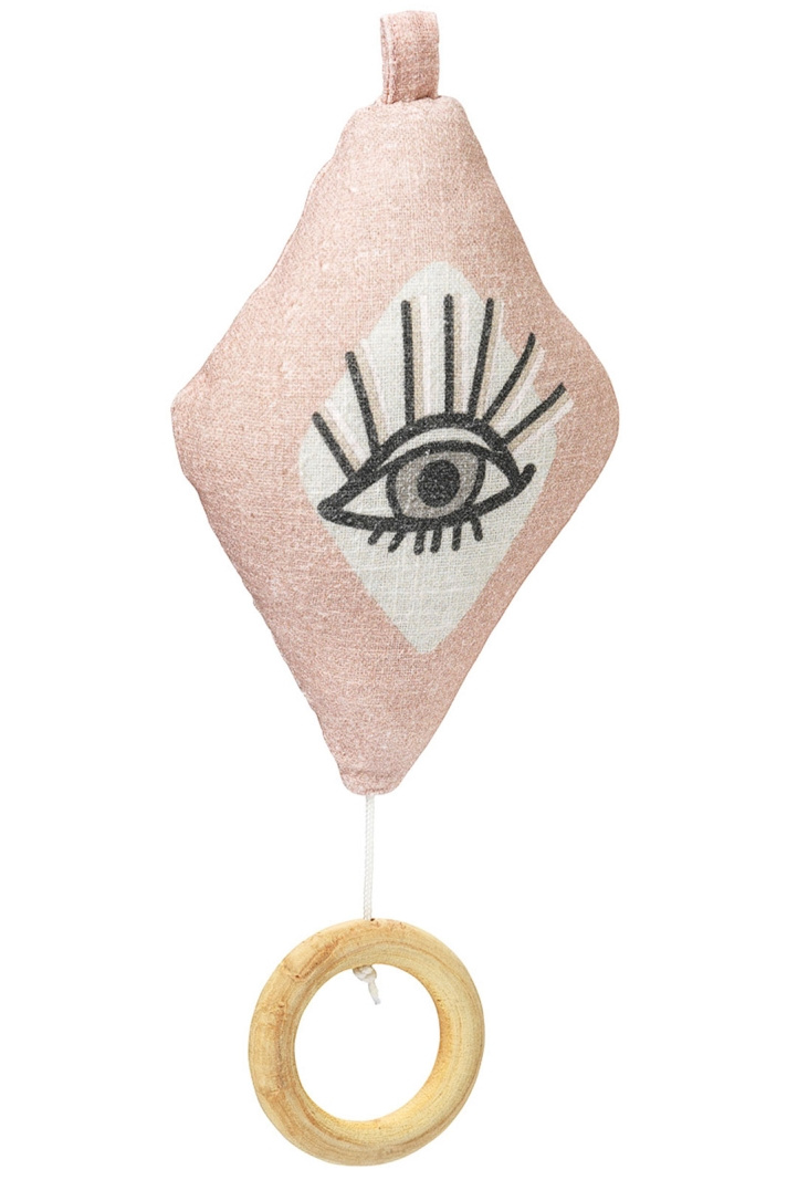 - Denne vidunderlige musikmobil passer lige så godt til barnevognssuffletten som til at hænge over barnets seng. Træk i snoren, og en vuggende melodi lokker din baby ind i drømmelandet. Indeni er der en ægte mekanisk spilledåse, og en lille ophængsøje hjælper den med at sidde på plads
