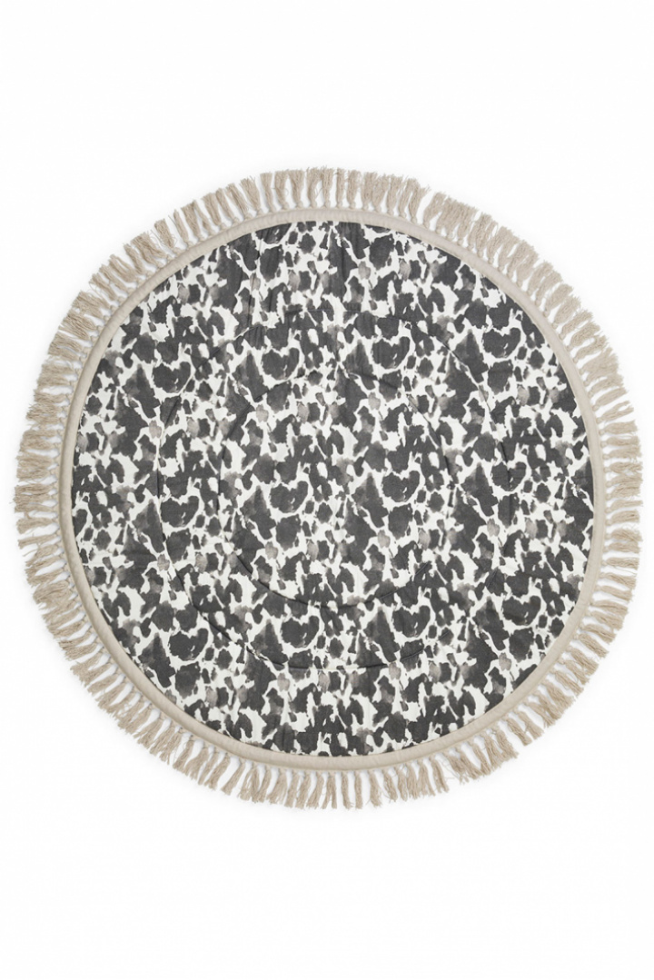 - Elodie Details legetæppe giver en blød og tryg overflade, hvor dit barn kan begynde at udforske verden. Det er polstret, hvilket gør legetæppet behageligt at ligge eller lege på. Med en diameter på 120 cm er det stor nok til at følge med i en god del af legetiden. Med sit stilrene design og vendbare sider er det en indretningsdetalje, der passer lige så godt i børneværelset som i stuen. Fremstillet med ydre stof af 100% Øko-Tex-certificeret bomuld. Selvfølgelig kan det maskinvaskes