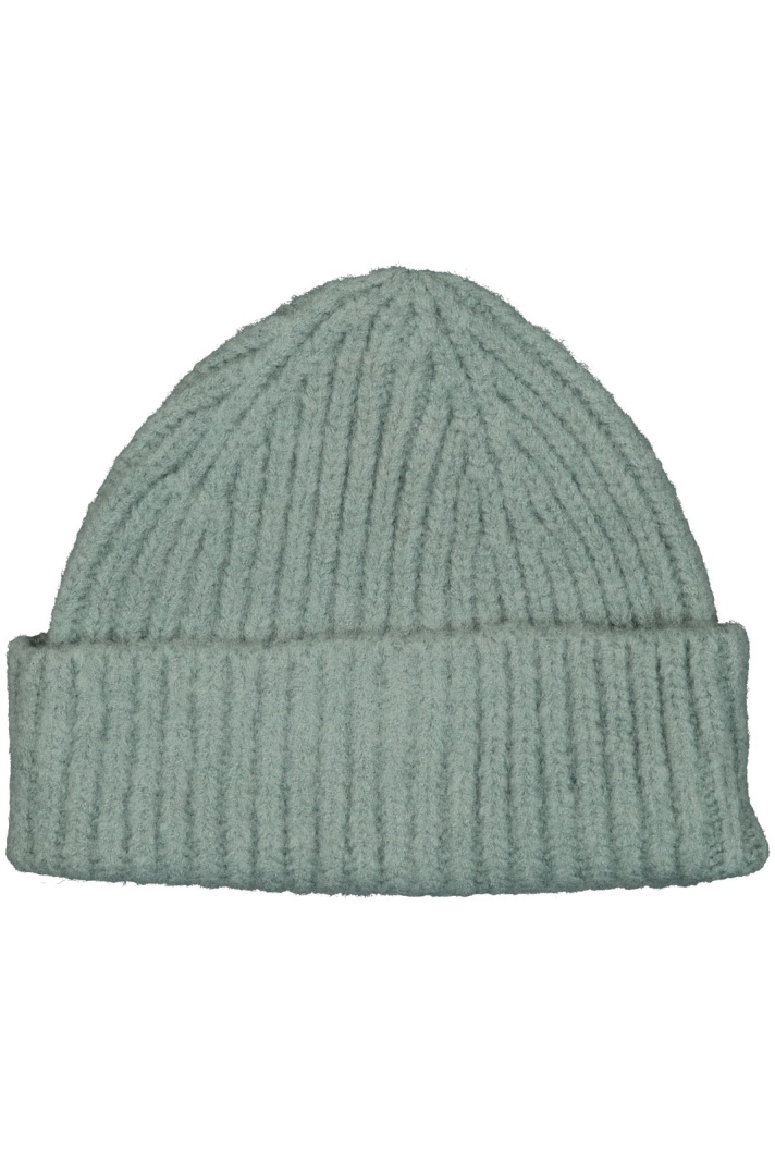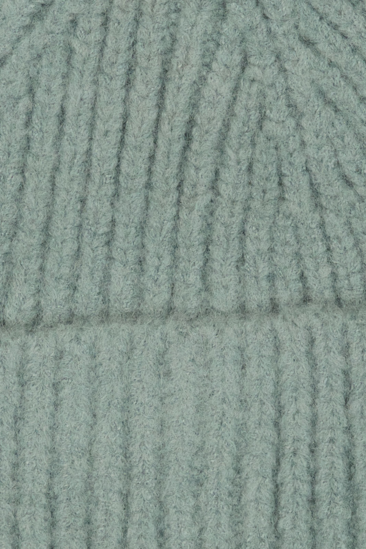 Ribbstickad mössa.