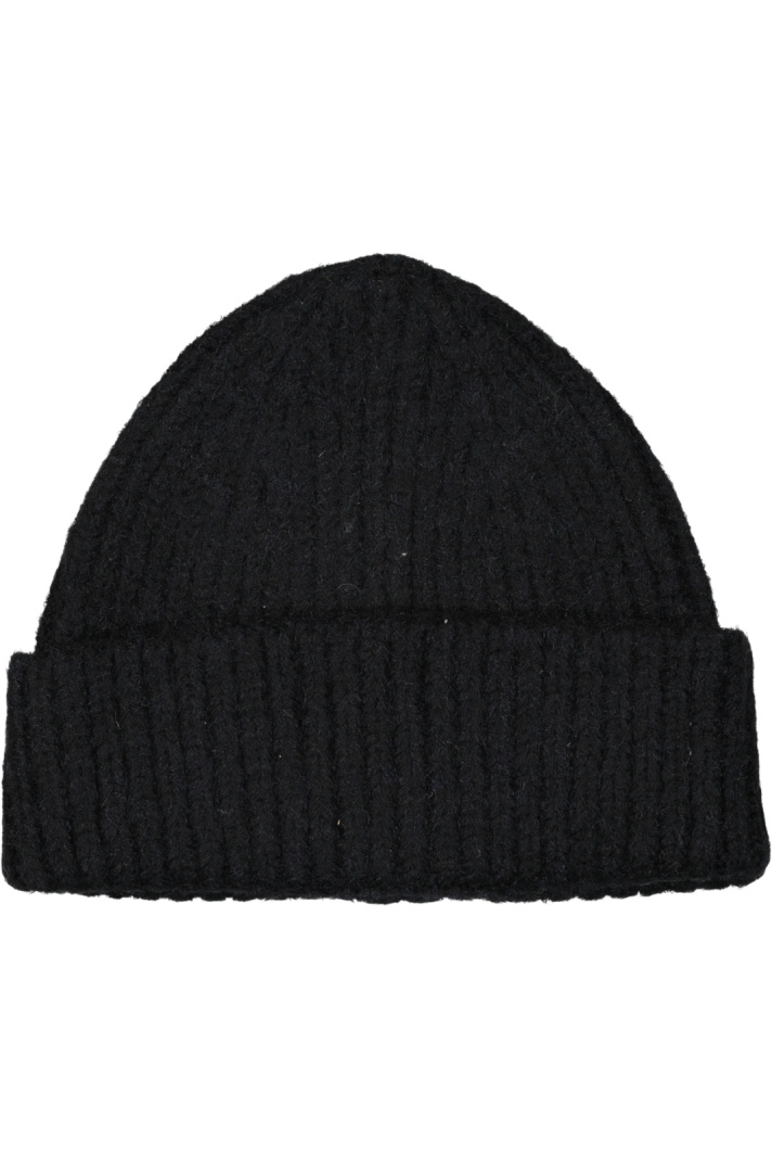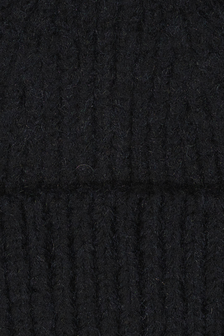Ribbstickad mössa.