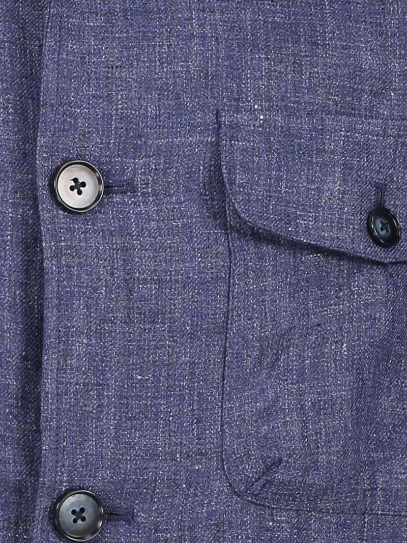 Navy Blue Four Pocket Linen Overshirt.