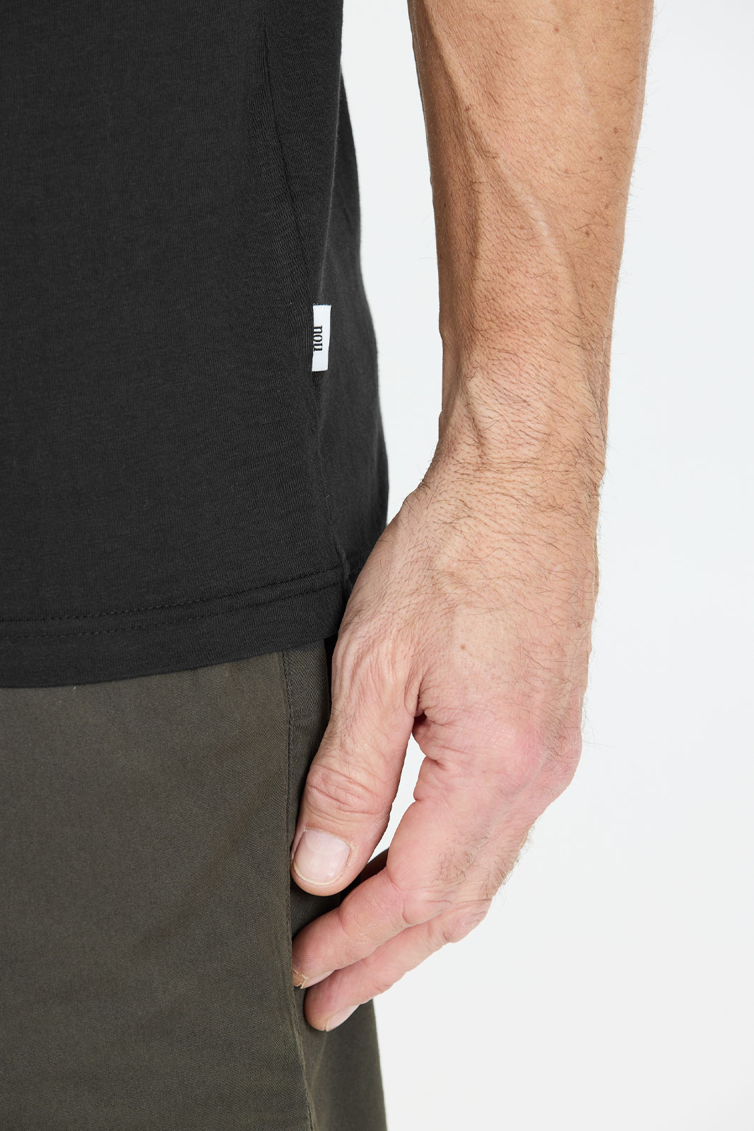 Opdag Highmore V2 M Tee fra Nou-, en herre-T-shirt der kombinerer enkelt design med hverdagsfunktion. Den har en normal pasform (regular fit) og en klassisk rund halsudskæring, som tilbyder en behagelig bevægelsesfrihed uden at føles ubehagelig i hverdagssituationer eller fritidsaktiviteter. Fremstillet af 100% bomuld giver den en blød fornemmelse mod huden, god åndbarhed og lang holdbarhed - perfekt som et pålideligt basislager i garderoben.