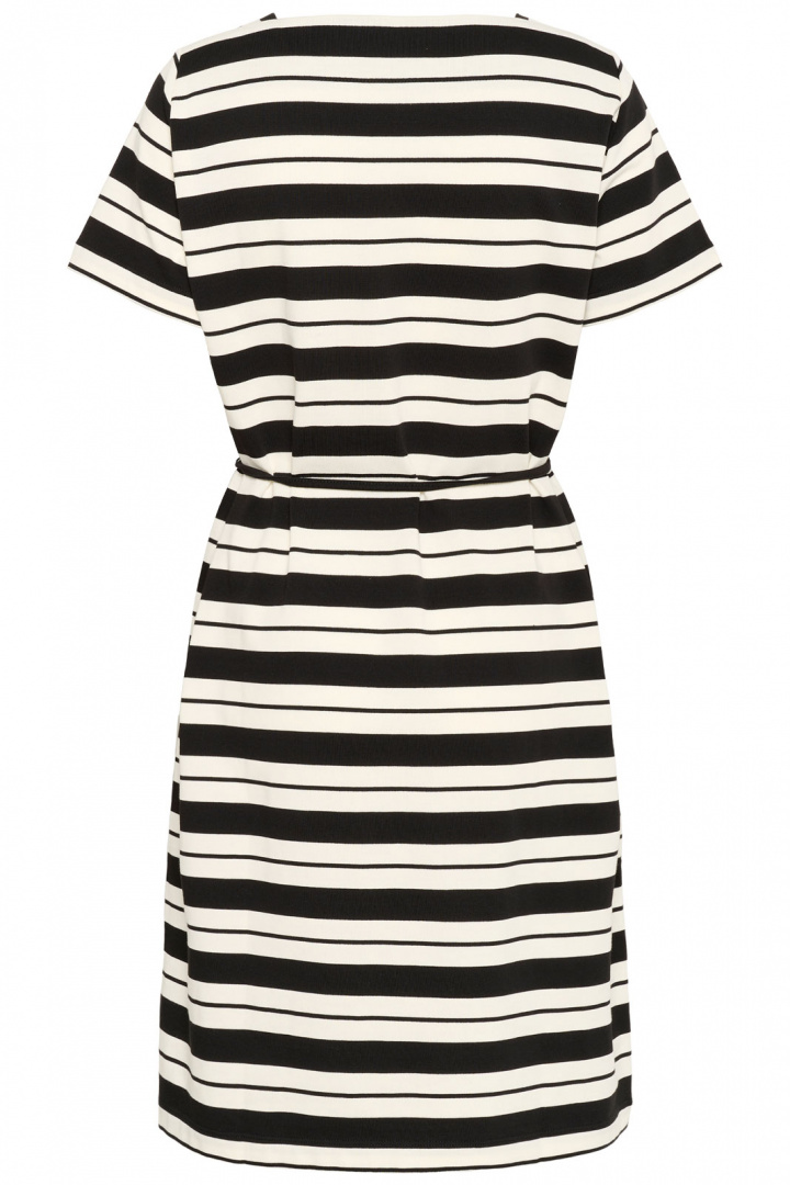 Opdag Pannyiw Lester Short Dress fra Inwear - en damekjole i normal pasform, der kombinerer tidløs stribet design med en moderne og behagelig silhuet. Den fyrkantede halsudskæring giver et elegant og rent udtryk, mens bæltet i taljen definerer taljen og skaber en flatterende form omkring kroppen. Den klassiske stribede design gør kjolen nem at matche til forskellige anledninger, fra hverdag til mere opklædte øjeblikke.