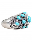 Ringen er fyldt med turkise sten i forskellige størrelser.
