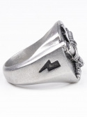 - Jernhestetekst på toppen samt lynene på siderne