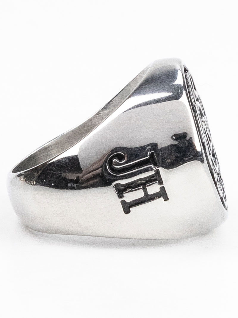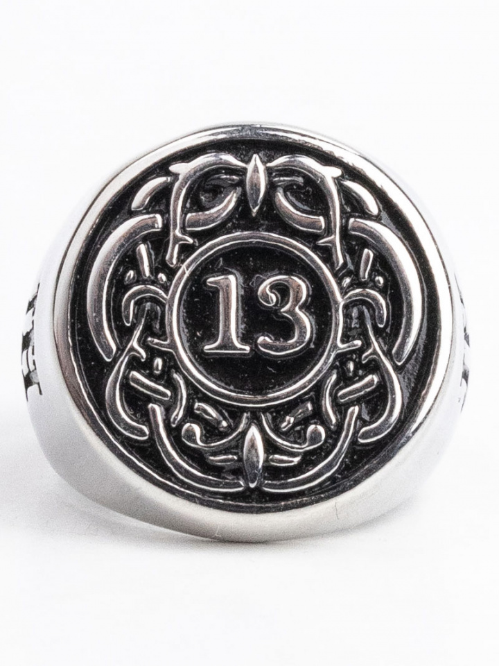 Den runde signetring med mønster inspireret af nordisk vikingekultur.