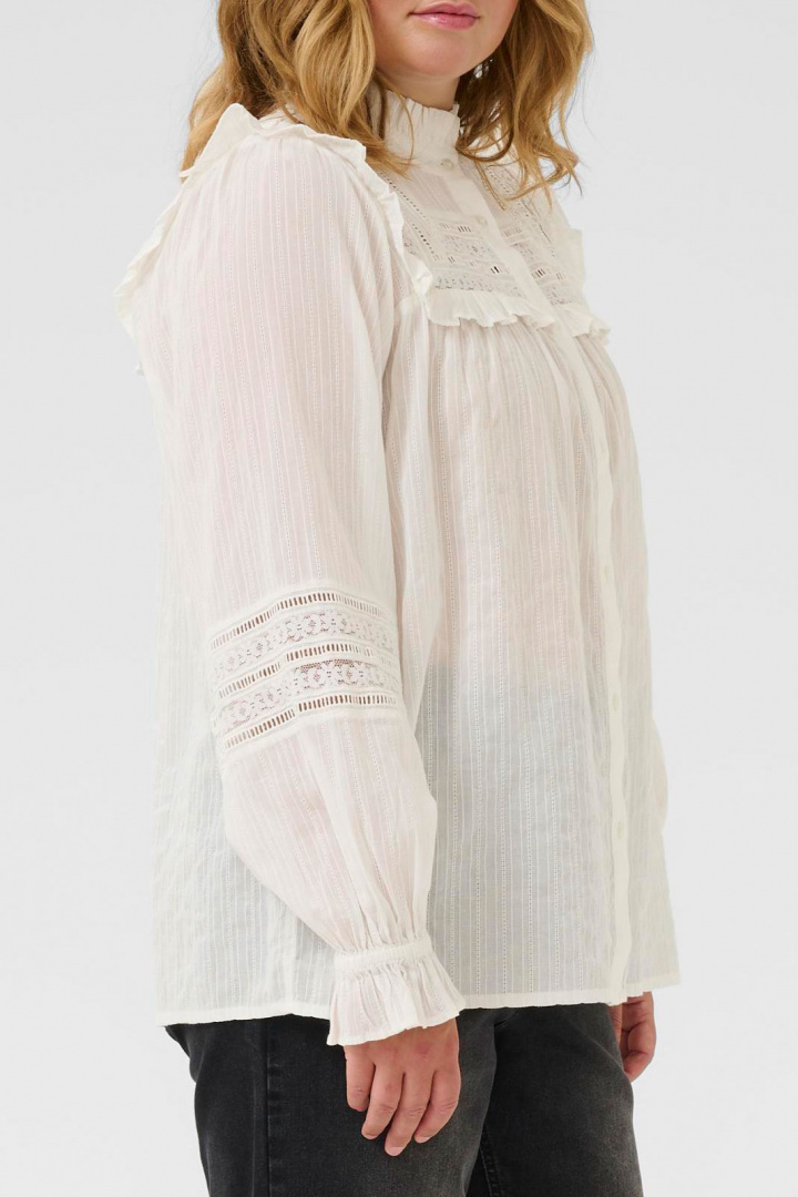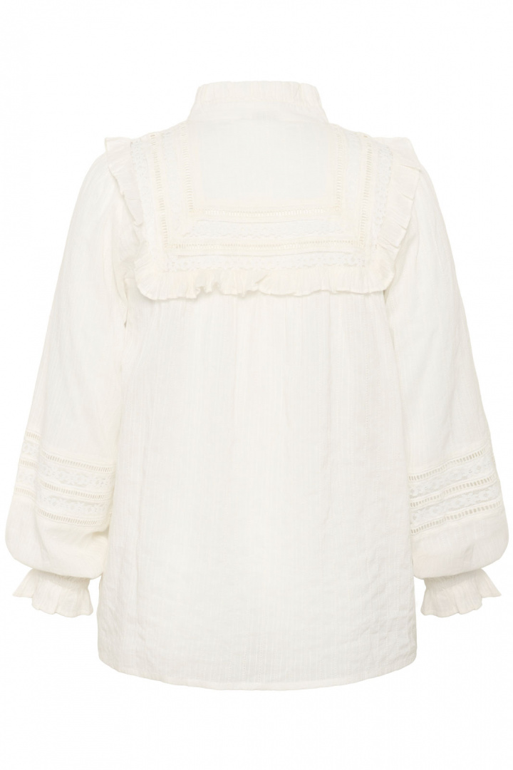 Fremstillet i 100% bomuld tilbyder blusen skøn komfort og naturlig åndbarhed, hvilket gør den ideel til både hverdag og fest. Den rene, klassiske bomuldsstruktur gør det nemt at kombinere Kcjessa Shirt Bluse med sorte eller farverige bukser, jeans eller en smuk nederdel - skab et stilrent look, der føles både moderne og tidløst.