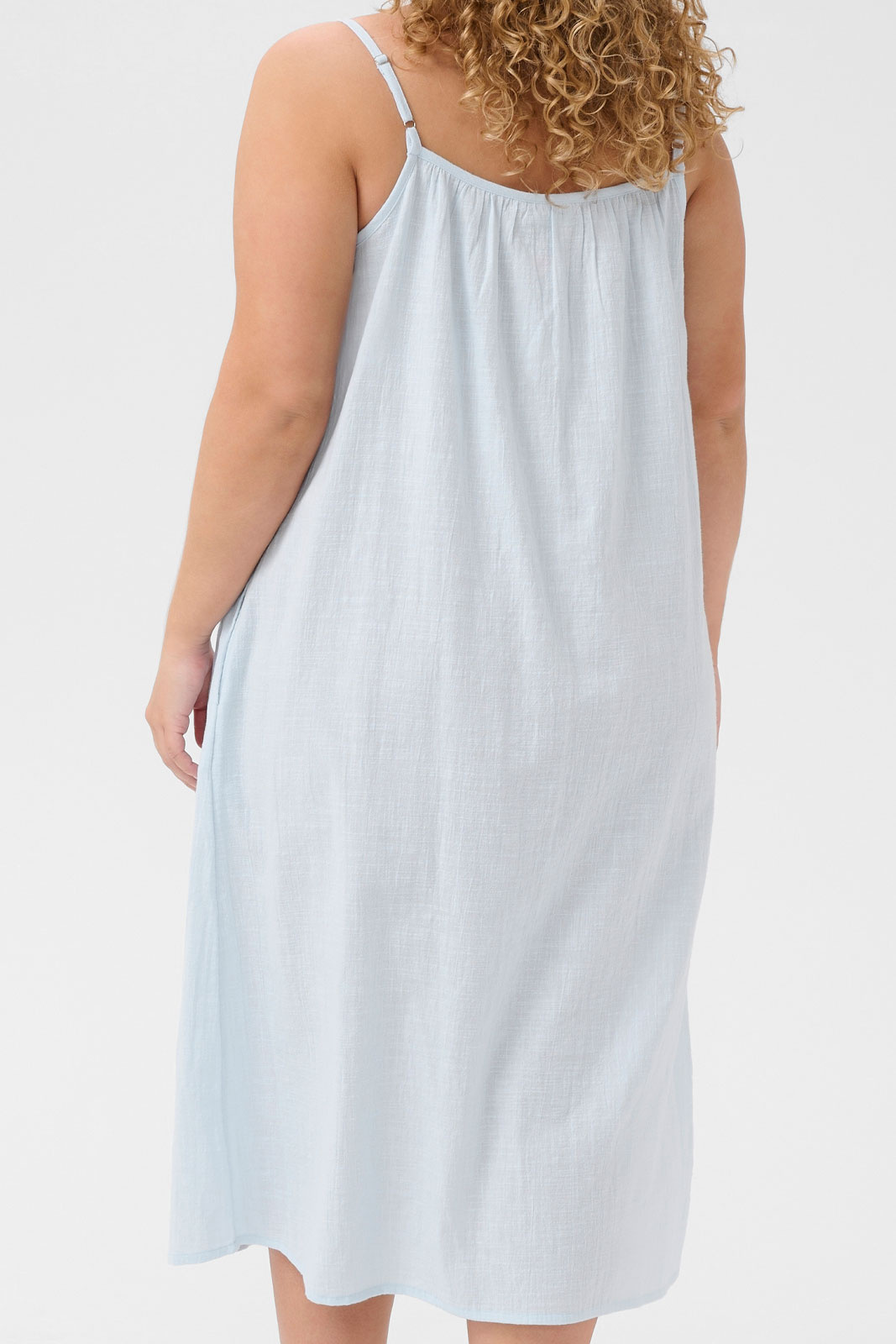 Opdag Kcpaula Strap Dress fra Kaffe Curve - en damekjole i normal pasform, der forener komfort med en tidløs, feminin silhuet til plus size-kunder. Den rundede halsudskæring giver et klassisk udtryk, mens de justerbare stropper lader dig finde den perfekte længde og bærestil. To åbne lommer giver praktisk opbevaring uden at gå på kompromis med designet, hvilket gør kjolen lige så funktionel som flot. Fremstillet i 100% bomuld føles den blød mod huden og tilbyder naturlig åndbarhed hele dagen. Denne kjole er nem at style til forskellige lejligheder - lad den være basen i din hverdagsgarderobe med sneakers, eller klæd den op med sandaler og accessories for et sommerligt look. Kcpaula Strap Dress er et stærkt valg for dig, der ønsker en komfortabel kjole i plus size, der leverer stil, funktion og kvalitet uden at være overdrevet.