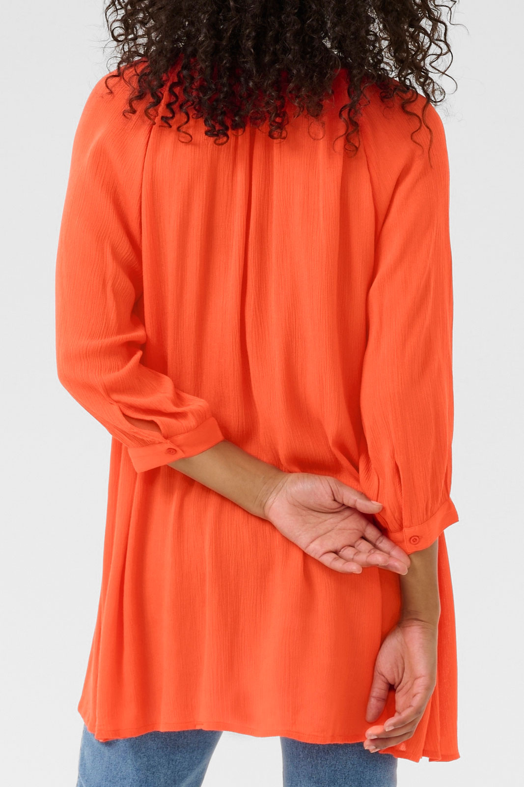 Amber Tunic fra Kaffe er en dametunika i normal pasform, der kombinerer enkel elegans med hverdagskomfort. Den runde halsudskæring prydes af en knap, der giver en subtil, klassisk detalje, mens den firkantede manchet giver et moderne præg og stilren karakter. Fremstillet i 100% viskose får stoffet et blødt fald og en behagelig følelse mod huden, samtidig med at det giver en flot drapering, der passer både til hverdagsbeklædning og lidt mere opklædte outfits.