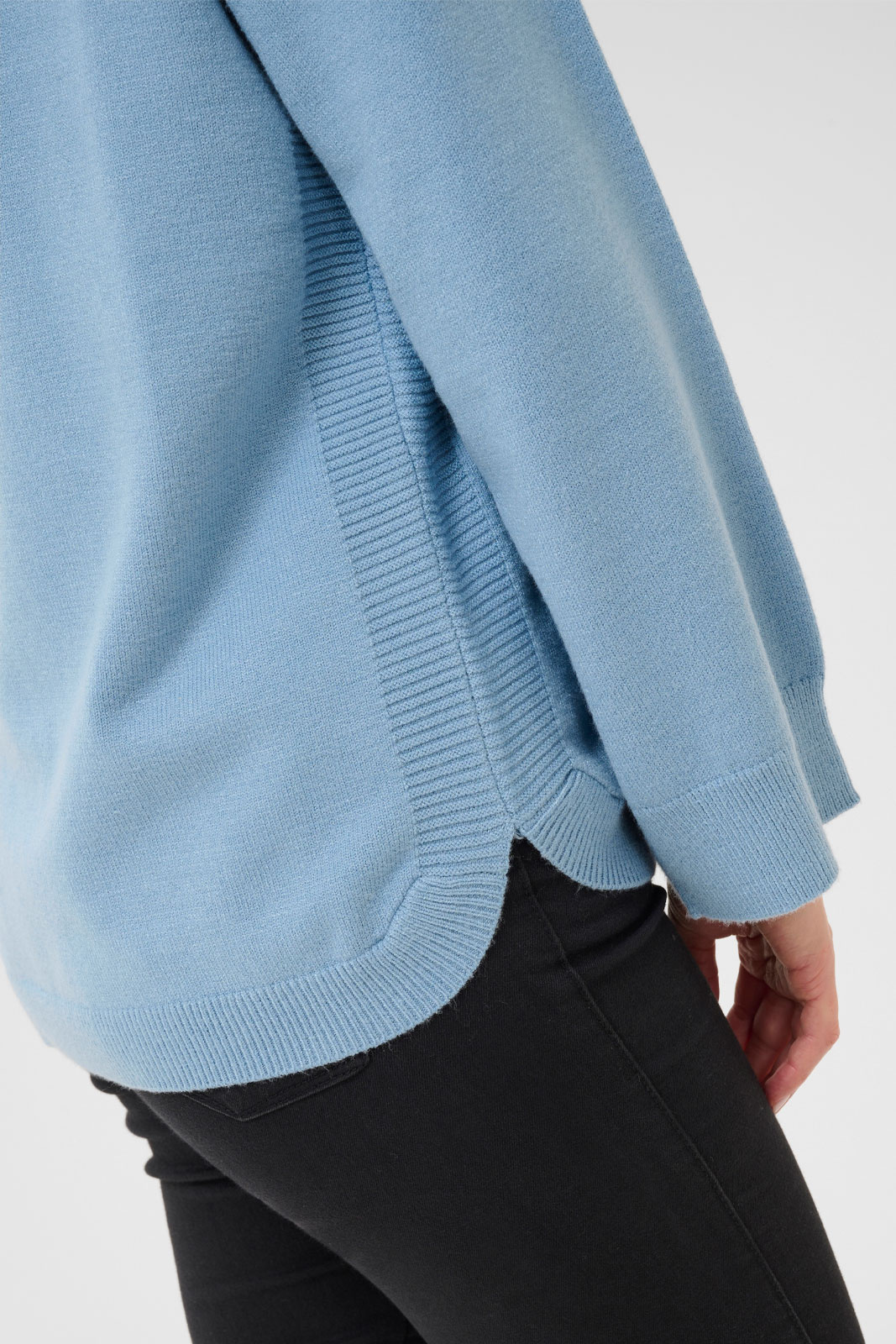 - Rib i kragen, ærmernes manchetter og nederst
