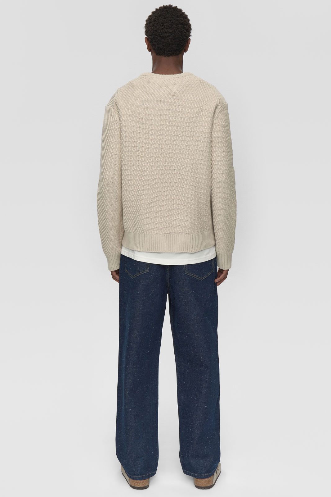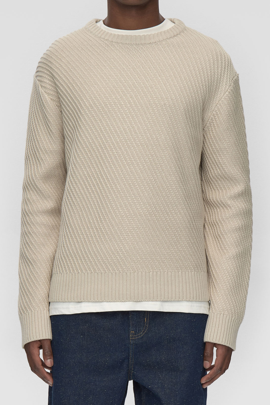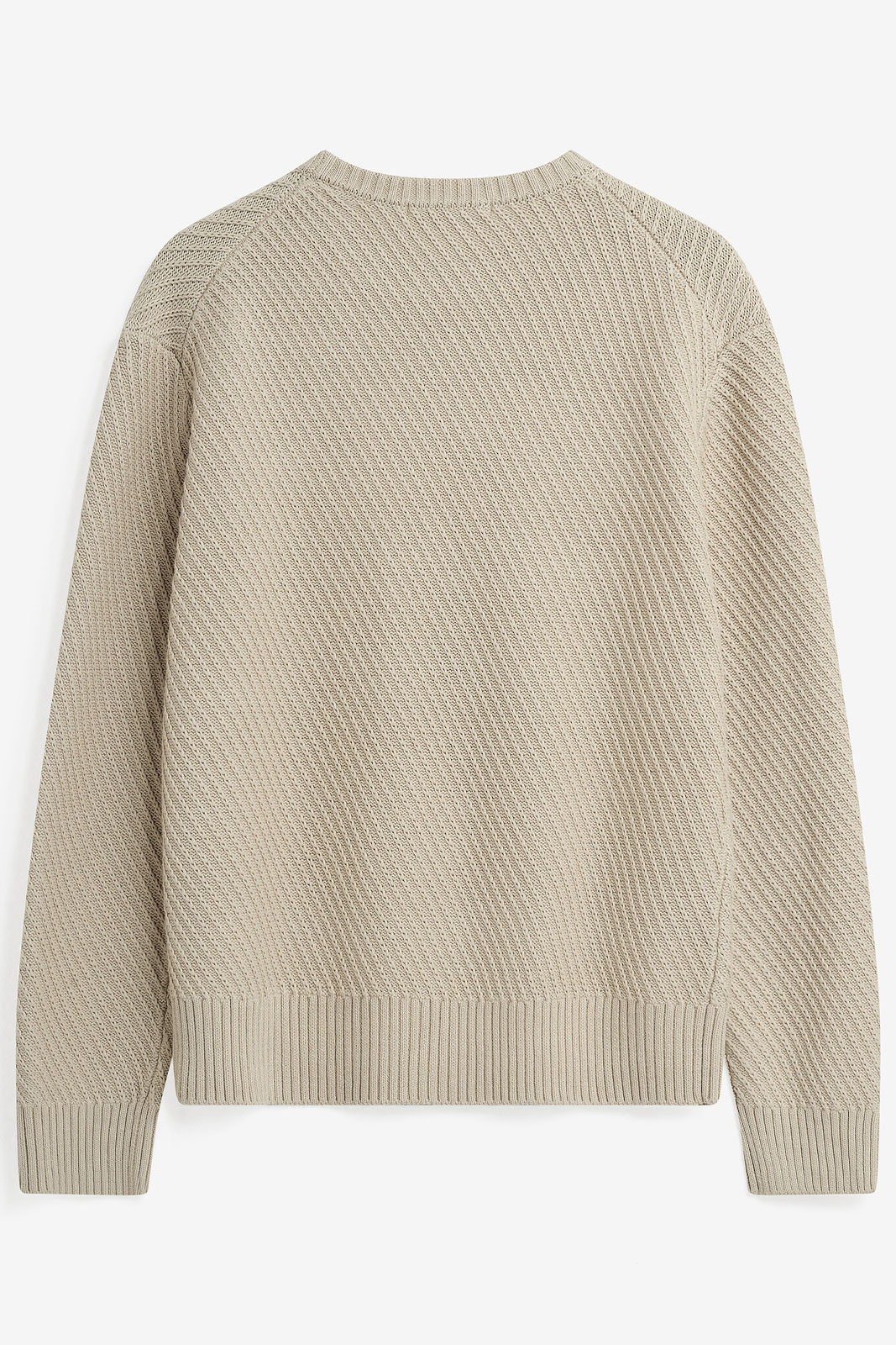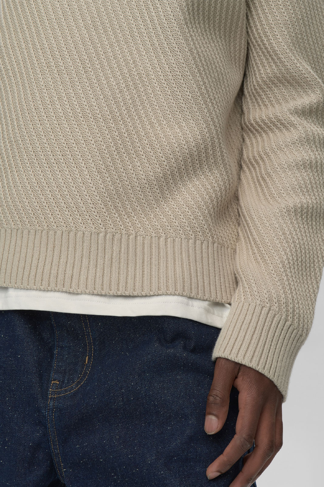 - Ribbet manchet ved kraven, ærmerne og nederst