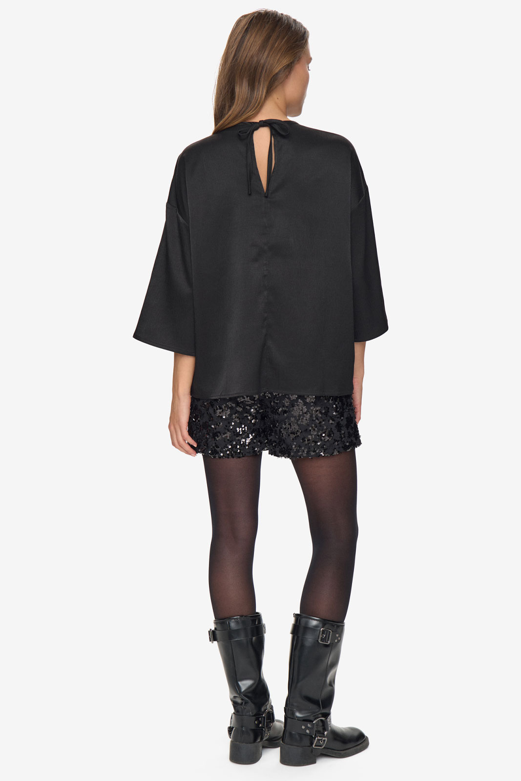 - Rund halsudskæring med bindedetalje bagpå