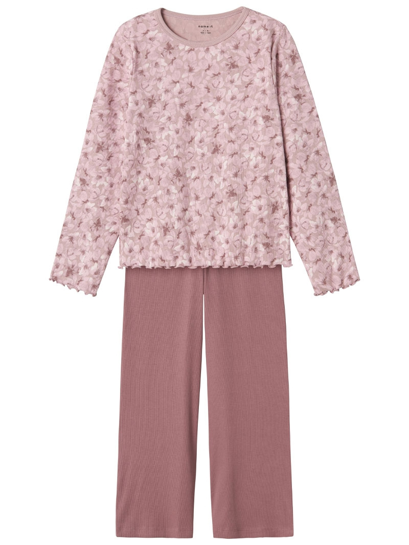 Nkfnightset Mauve Flower Loose Rib Noos