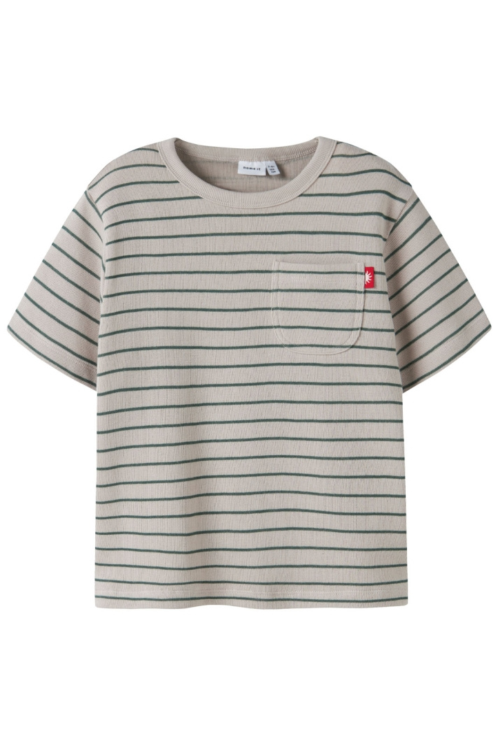 Opdag Name Its stribede t-shirt til børn med normal pasform. Den rundede halsudskæring giver en blød og behagelig følelse til leg og hverdag, mens det klassiske stribede look gør den nem at matche med jeans, shorts eller nederdele. En åben brystlomme tilføjer et legende detalje, som barnet kan genkende og lide, uden at gå på kompromis med komforten eller pasformen.