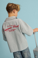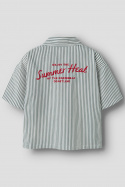 Nkmherni Ss Overshirt skjorte fra Name It er en stribet t-shirt til børn, der kombinerer stil og komfort i en enkel, afslappet pasform. Med klassisk krave og en praktisk knaplukning foran er den nem at bære som overgangstøj over en T-shirt eller som en let skjorte på varmere dage. Den kortærmede design giver god ventilation og bevægelsesfrihed, mens det broderede tryk bagpå giver tøjet en unik detalje, som barnet vil være stolt af.
