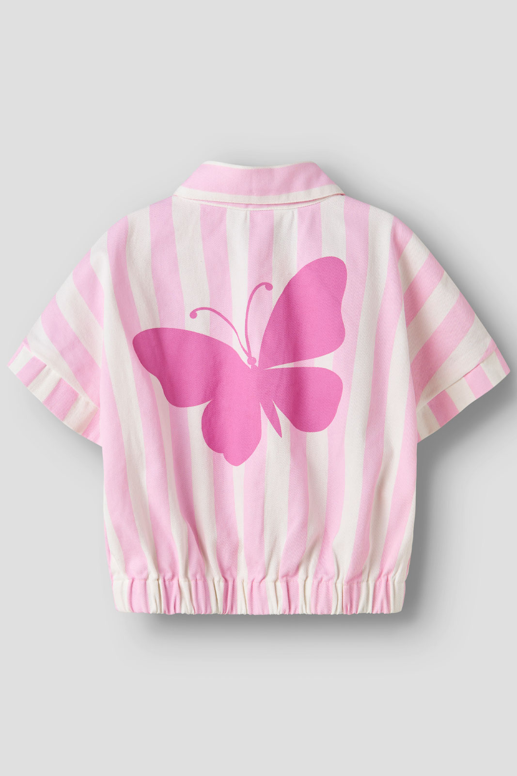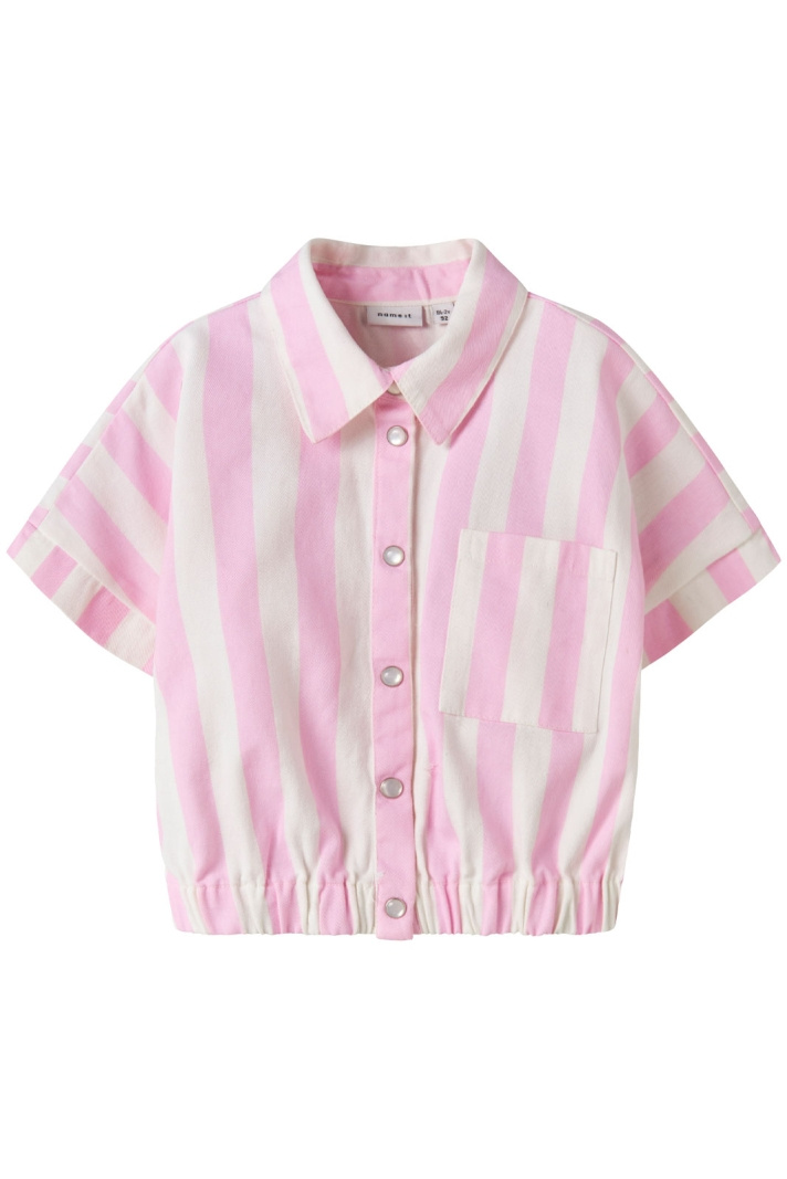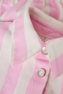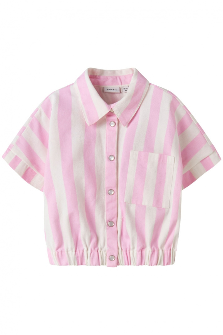 Nmffriba Vest fra Name It er en afslappet vest til børn, der forener komfort med en legesyg stil. Det bløde bomuldsstof gør tøjet behageligt mod huden og giver naturlig åndbarhed hele dagen. Vesten har en klassisk krave og en praktisk knaplukning foran med trykknapper, hvilket gør den nem at tage på og af, selv når barnet er aktivt. En åben brystlomme giver plads til småting som snacks- eller buskort, mens elastikken i vestens nederste del sikrer en behagelig pasform omkring taljen uden at føles tvungen. Det stribede design kombineres med et trykt motiv, hvilket giver tøjet et sportigt og moderne udtryk uden at overdrive.