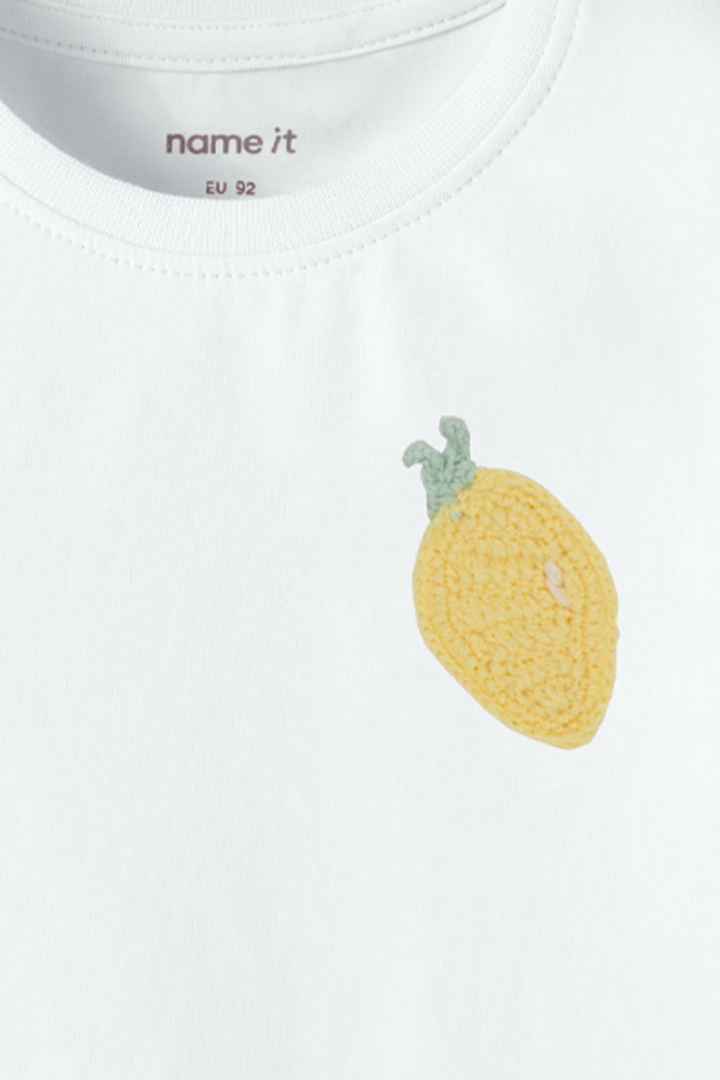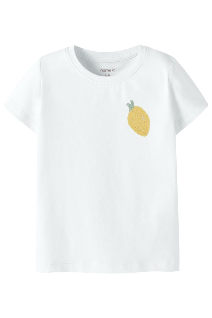Nmfjuanitta Ss Top Box Top fra Name It er en blød t-shirt til børn i normal pasform, perfekt til hverdag, leg og fritid. Den runde halsudskæring føles behagelig mod huden og gør det nemt at tage tøj på og af. Det hæklede motiv giver en legende og unik designdetalje, som barnet gerne vil vise frem. Fremstillet af økologisk bomuld, 95%, og elastan, 5%, tilbyder stoffet både blødhed og lidt stræk, der giver bevægelsesfrihed, så barnet kan lege uden at føle begrænsninger. Denne top er et smart valg til en bæredygtig garderobe - den passer godt til jeans eller shorts og fungerer lige så godt til skole som til fritidsaktiviteter. Med Name Its fokus på naturlige materialer og komfort bliver denne t-shirt et pålideligt valg, når du vil købe et børnetøj, der føles godt mod huden og nemt kan matches med andre beklædningsgenstande.