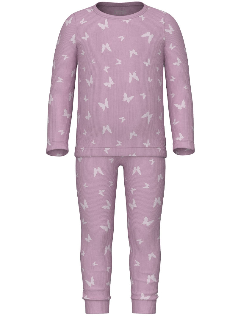 Nmfnightset Pink Butterfly Rib Noos