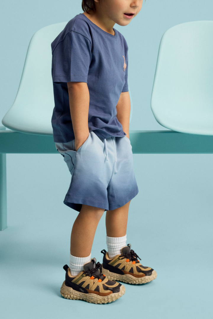 Praktiske detaljer, der følger barnet i løbet af dagen: åbne sidelommer og åbne baglommer gør det nemt at have småting tæt på hånden. Ombre-designet giver et moderne touch, der føles afslappet uden at være påtrængende, hvilket gør shortsen let at matche med flere stykker tøj i børns garderobe.