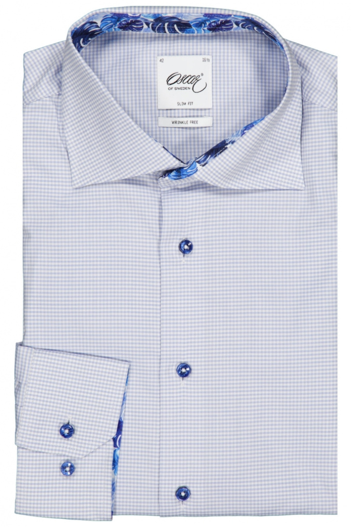 Opdag Oscar Skjorte 6519 Slim fra Oscar Of Sweden - en skjorte i slim fit, som kombinerer tidløs klassisk stil med en moderne, smal silhuet. Den gør sig lige så godt på kontoret som i sociale sammenhænge, når du ønsker et poleret, men afslappet look. Det ternede design giver en smart, hverdagsegnede fornemmelse, der nemt kan bygges videre på med forskellige farver og materialer.