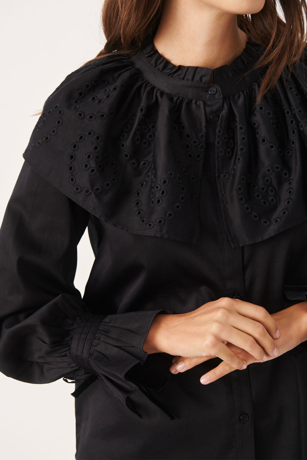 - Rund halsudskæring med flæse