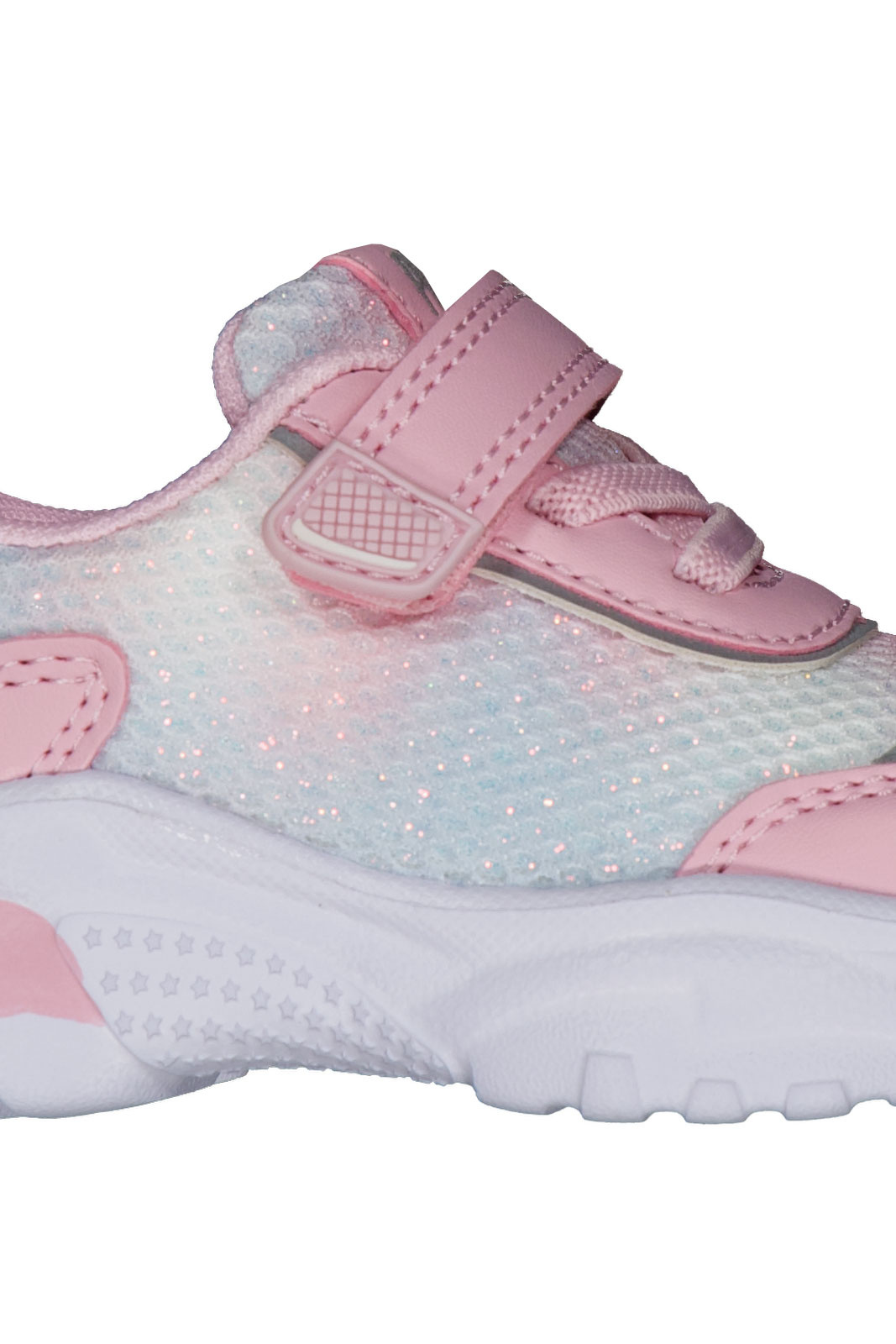 Sætte de sidder på foden gør dem praktiske i hverdagen: velcro-lukningen letter på- og aftagning og giver en justerbar pasform, der passer til forskellige fodbredder. Designet er hurtigt og nemt at bruge for små børn, der vil klæde sig selv, samtidig med at den stilrene glitrende overflade gør skoene til et flot supplement til hverdagsoutfittet. Materialerne—tekstil og synt