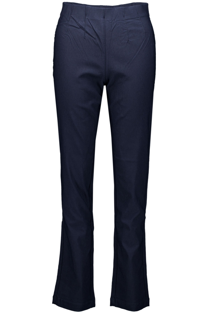 Opdag Wilma Pants, et damemodebukser fra Rapido, der kombinerer en moderne slim fit med en behagelig hverdagsstil. Med smalle ben og elastik i taljen får du en tætsiddende og stilfuld silhuet, der passer lige godt til hverdagsbrug som til mere opklædte lejligheder. Den normale talje giver en afslappet men velsiddende pasform, der sidder komfortabelt hele dagen uden at gå på kompromis med stilen. Stoffets stretch gør, at bukserne følger kroppens bevægelser blødt og responsivt, hvilket gør dem nemme at bære uanset aktiviteter.
