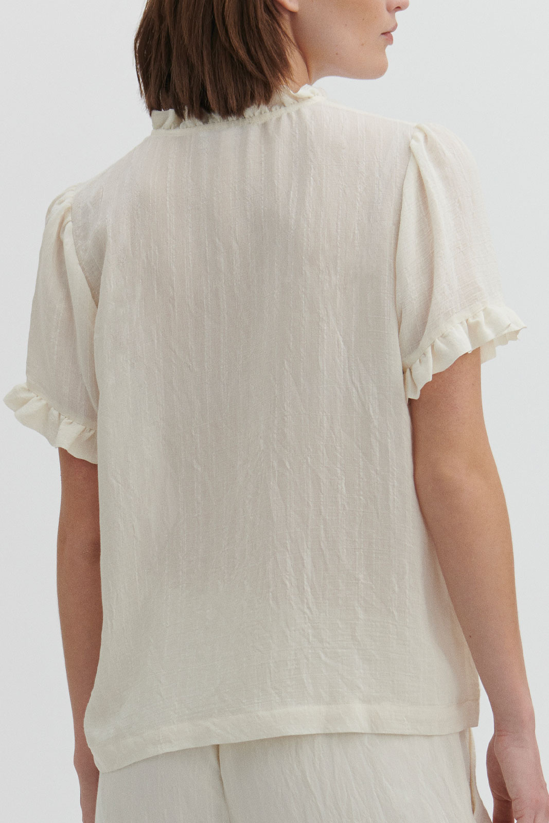 - Flæsedetalje ved kraven og ved ærmernes manchetter