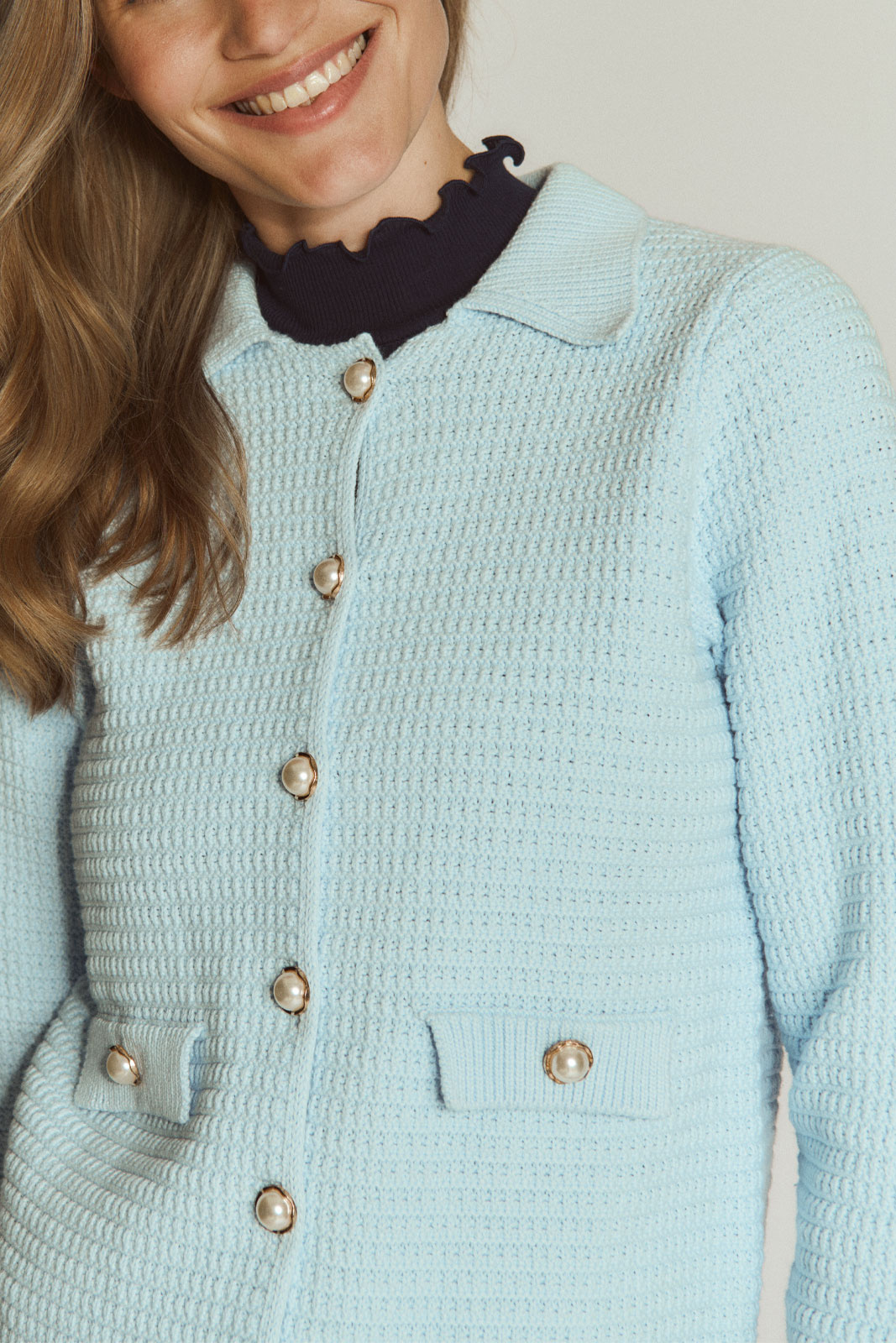 Knaplukning foran med pene perleknapper.
