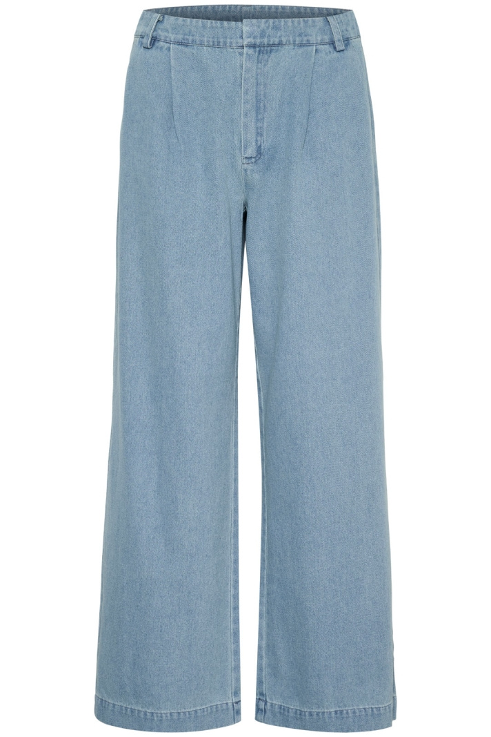 Jaclynsz Pants fra Saint Tropez er en dametrouser med en klassisk normal talje, der passer lige godt til hverdag som til mere opklædte outfits. De brede ben skaber en afslappet og feminin silhuet, der bevæger sig blødt med hvert skridt, mens det rene, tidløse design gør den let at style med både toppe og blazere. Bukserne er udstyret med åbne sidelommer, der giver praktisk opbevaring og et stilrent udseende, sammen med imitationslommer bagpå, som opretholder en elegant og minimalistisk profil. Den lukkes smidigt med krog og lynlås, hvilket giver en sikker og komfortabel pasform dag efter dag. Fremstillet i 100% bomuld med et blødt viskosefor på 100% føles det behageligt mod huden og ånder godt hele dagen. Denne kombination af materialer giver en holdbar buks, der holder formen og komforten under brug. Jaclynsz Pants er