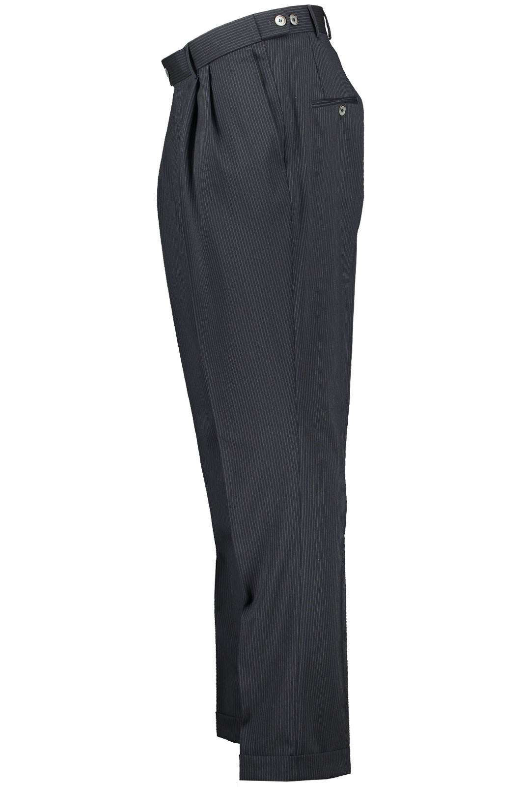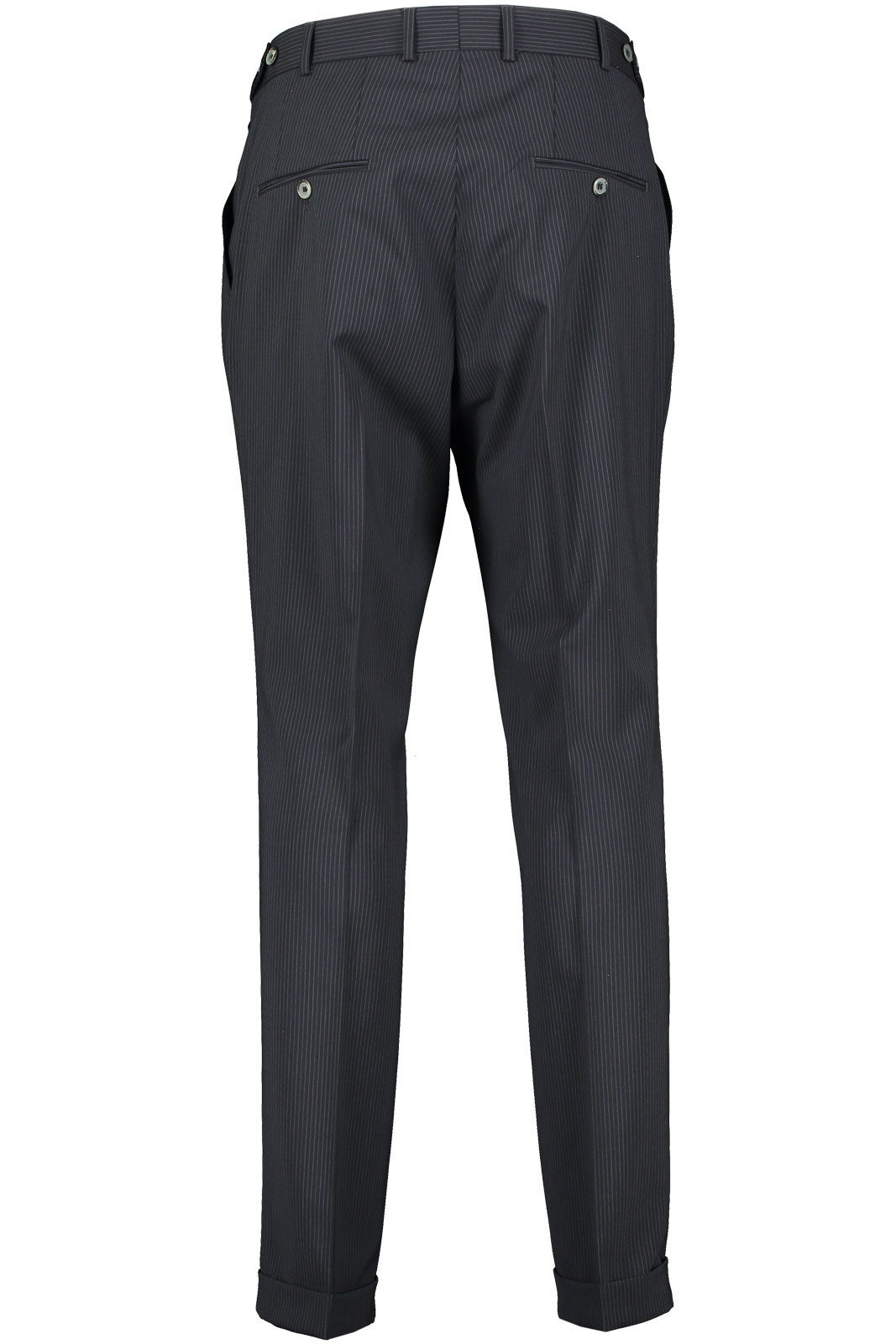 - Foldet op ved buksebenets ende