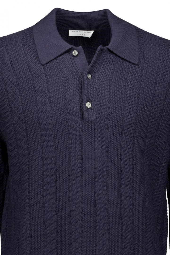 Johnny Rws T00747 trøjen fra Tiger Man er en herretrøje, der kombinerer et tidløst look med blød komfort. Den har en normal pasform, der passer både til hverdagslook og mere opklædte outfits, og den klassiske krave med knaplukning giver en ren, elegant silhuet. Den strikkede konstruktion med ribkant ved ærmeslutr og nederst bevarer formen og giver en afslappet pasform, der sidder komfortabelt hele dagen. Fremstillet i 100% merinould føles trøjen særligt blød mod huden og tilbyder naturlige temperaturregulerende egenskaber, der holder dig varm, når det er køligt, og ånder, når det bliver varmere. Dette gør Johnny Rws T00747 til et fremragende valg til efterårs- og forårsgarderoben, samtidig med at den fungerer godt som et enkelt mellemlag på koldere dage. Med sit klassiske design fra Tiger Man er trøjen et sikkert valg for den stilbevidste mand, der ønsker komfort uden at gå på kompromis med udseendet. Vælg Johnny Rws T00747 for en alsidig, holdbar trøje, der passer lige så godt til jeans som til chinos, og som holder sig pæn over tid.