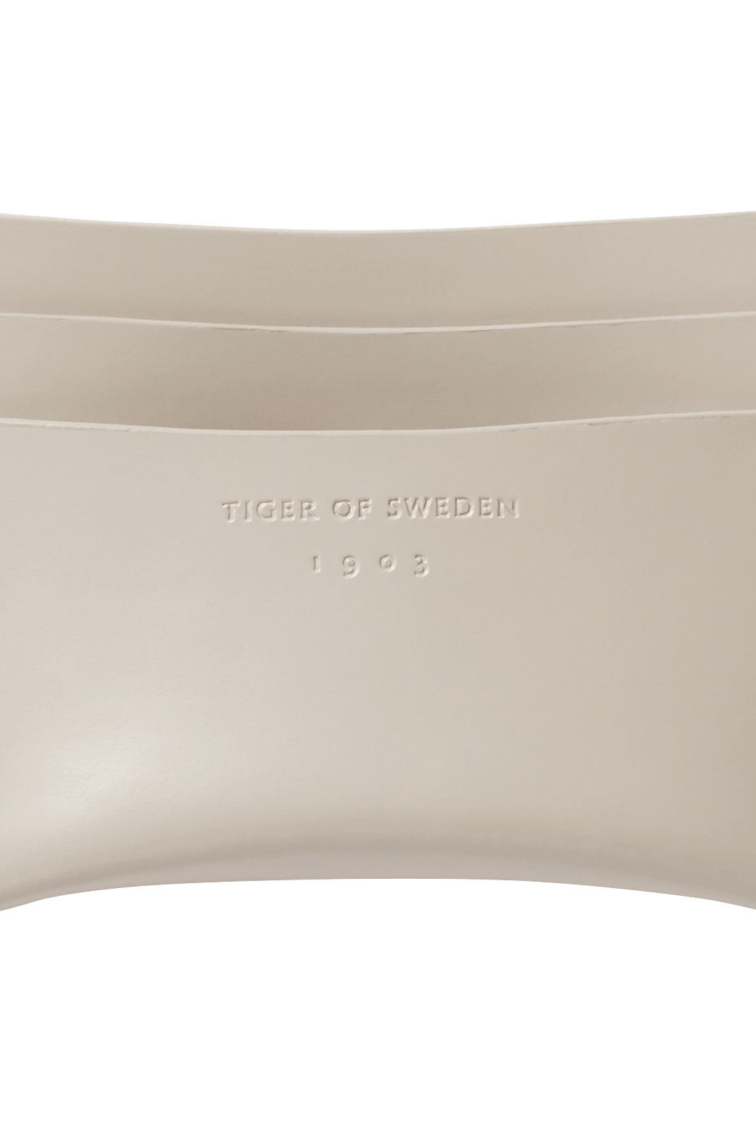 - Udstanset Tiger of Sweden-logo på forsiden