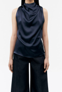- ærmeløs top i triacetat og satin